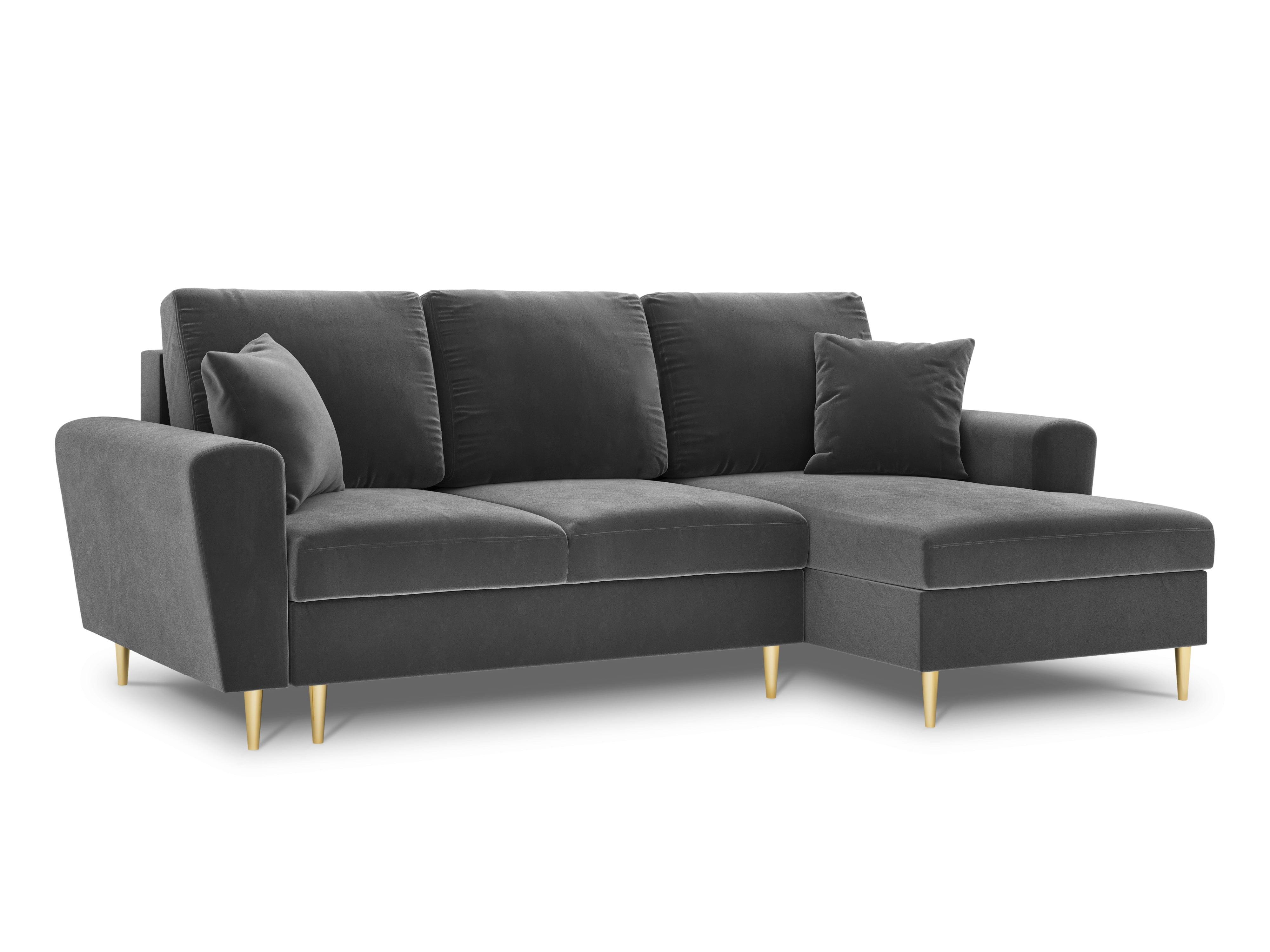 Narożnik prawostronny aksamitny z funkcją spania KYOTO jasnoszary ze złotą podstawą Cosmopolitan Design    Eye on Design