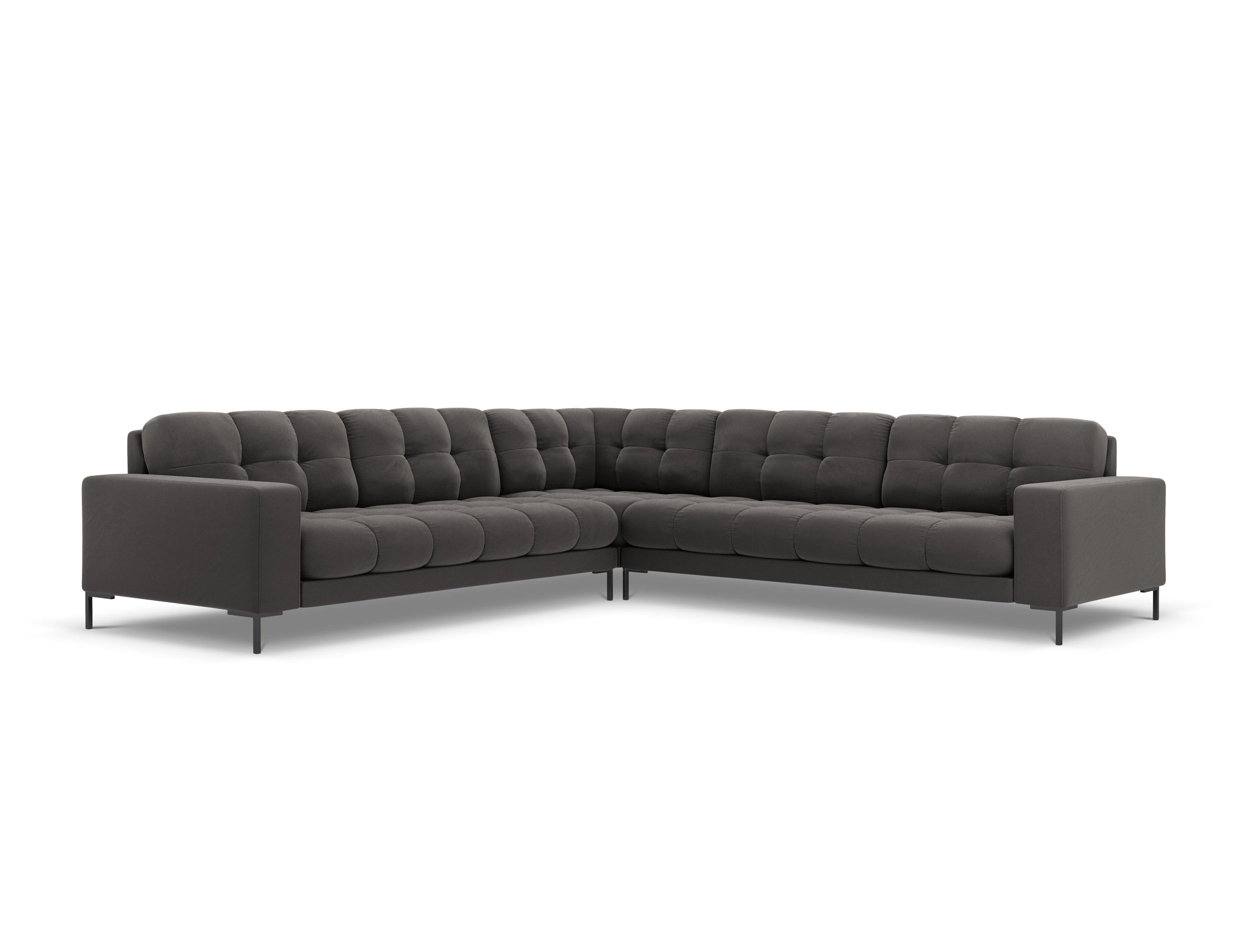 Samt symmetrische Ecke des dunkelgrauen Holzes mit einer schwarzen Basis