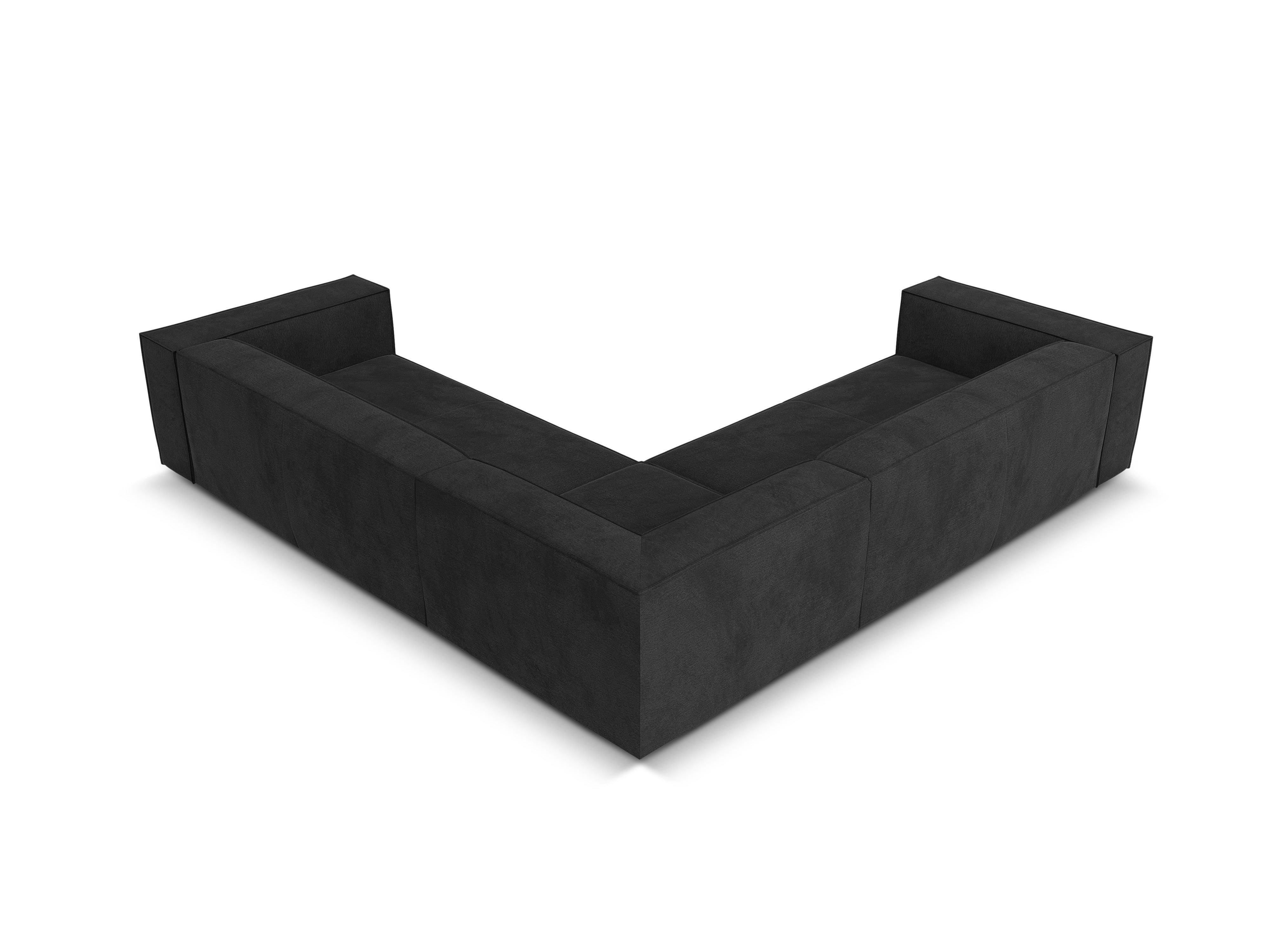 Eine Ecke für fünf Personen Madame mit einem ausgeprägten Charakter und einem eleganten Finish ist eine gute Wahl für ein modernes Wohnzimmer. Der tiefe Sitz eignet sich sowohl für soziale Versammlungen als auch bis zu einem Moment der Entspannung nach einem harten Tag. Sie können bequem in freien Positionen ruhen. Mit einer niedrigen Figur, breiten Armlehnen und Rücken erzeugt es einen gemütlichen Block.