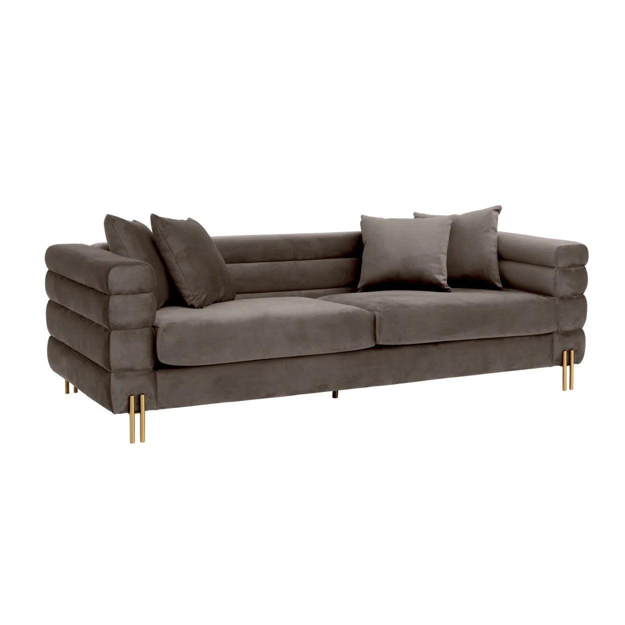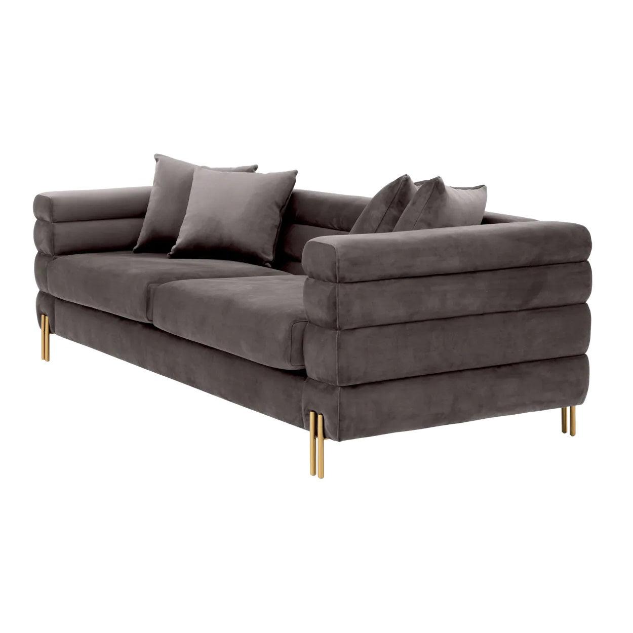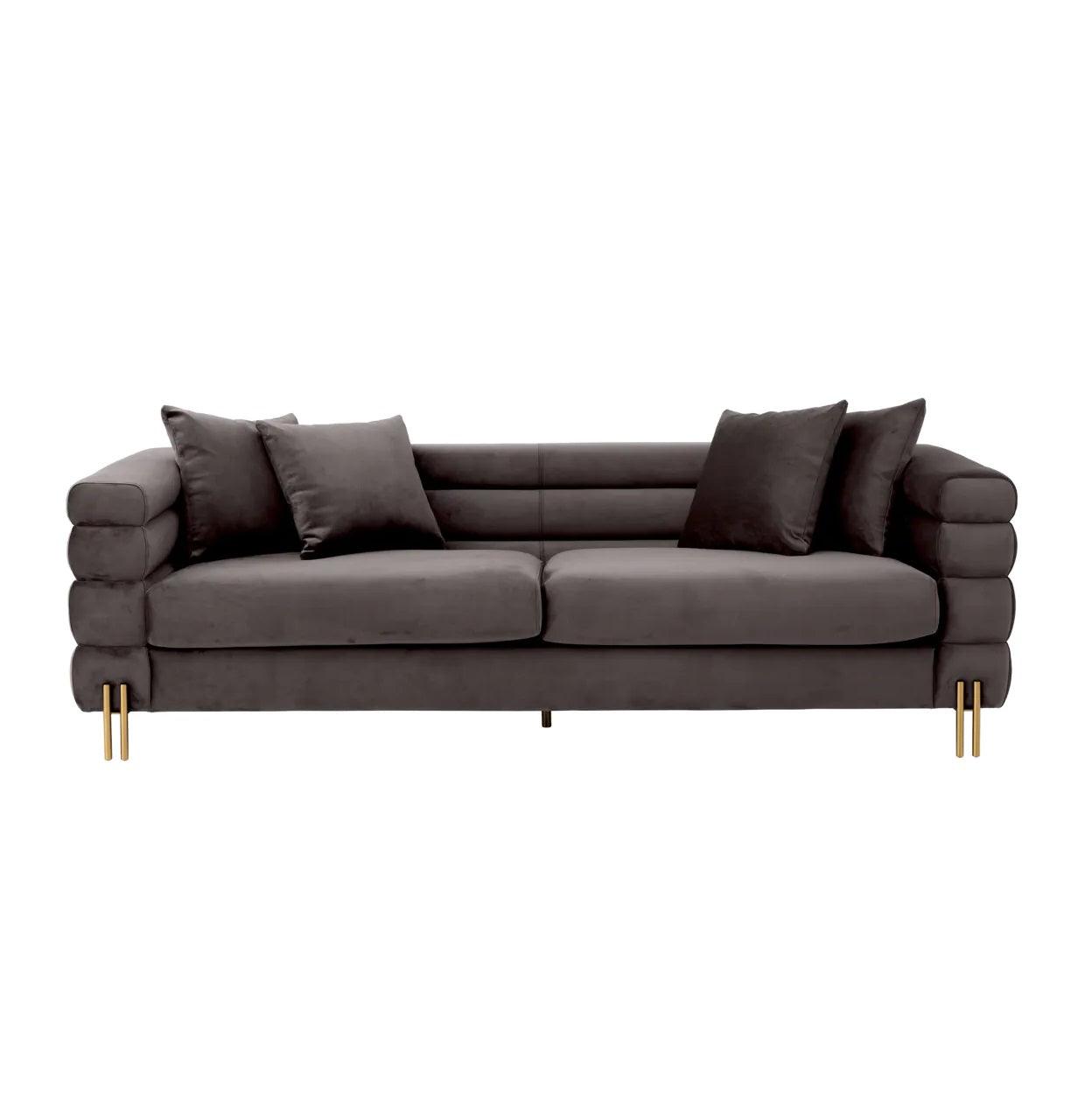 Dunkelgraues Sofa York ist nicht nur ein Möbel, sondern auch ein echtes Kunstwerk, das sofort Aufmerksamkeit erregt. Ihre ausdrucksstarke Silhouette und ihre Samtpolsterung schaffen eine Kombination aus Komfort und Luxus. Das Set enthält vier Quadratkissen, die zusätzlichen Charme und Komfort verleihen. Es ist ein Sofa, das einen Hauch von Geschichte und Exklusivität in sich bringt und gleichzeitig ein extrem modisches Element eines modernen Dekors bleibt.