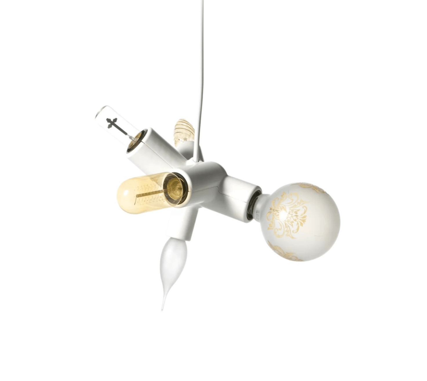 Die Befestigung ermöglicht die Verwendung von fünf Lichtquellen entsprechend Ihrer Wahl. Große Glühbirnen, kleine Glühbirnen, farbenfrohes Glas, mattes Glas, runde Glühbirnen, Flammenbirnen, Rohrlampen usw. Möglichkeiten und Kombinationen sind unbegrenzt. Lassen Sie Ihre Fantasie fliegen und Ihre eigenen erstellen Einzigartige Lampenmontage Cluster!