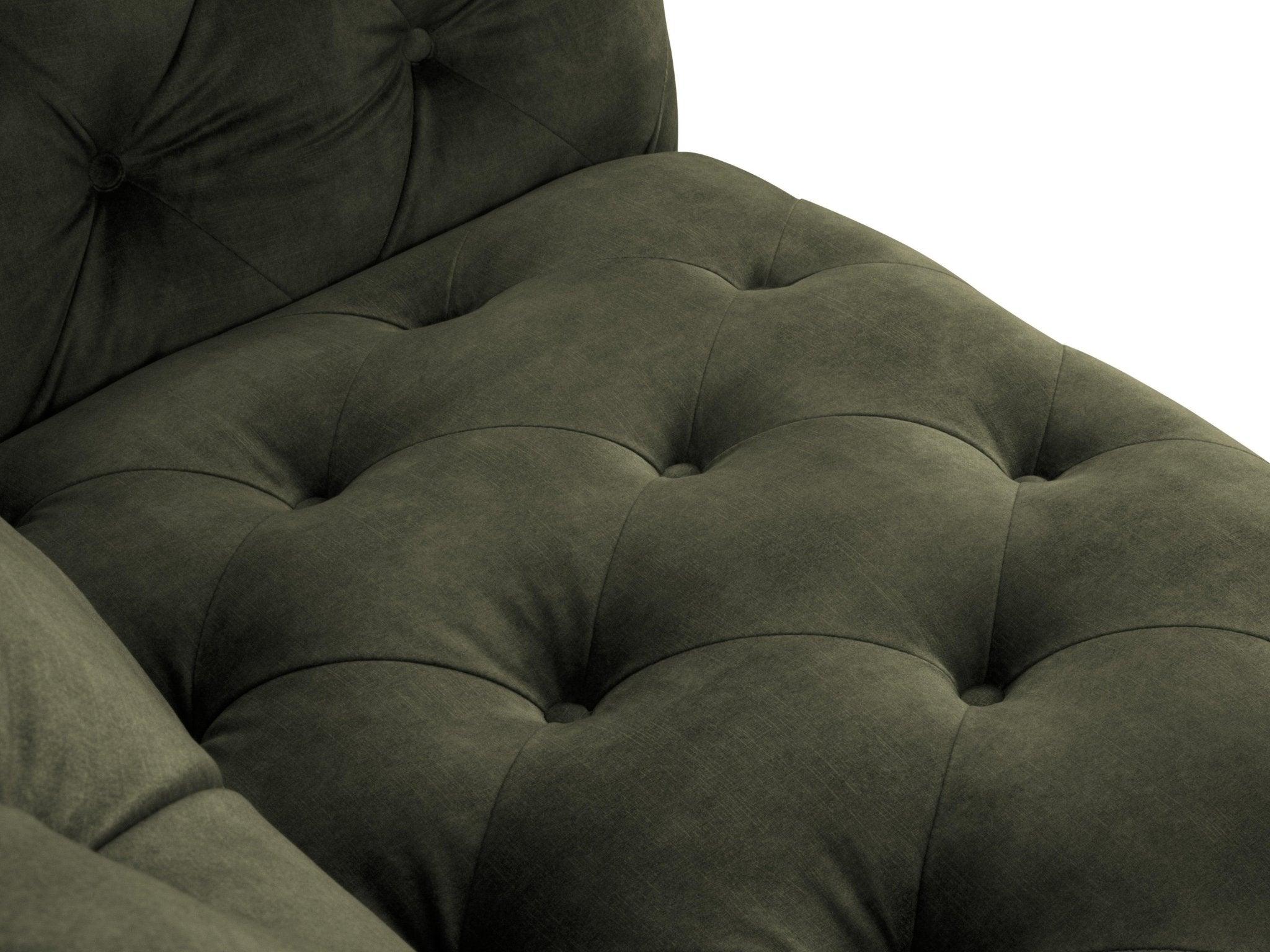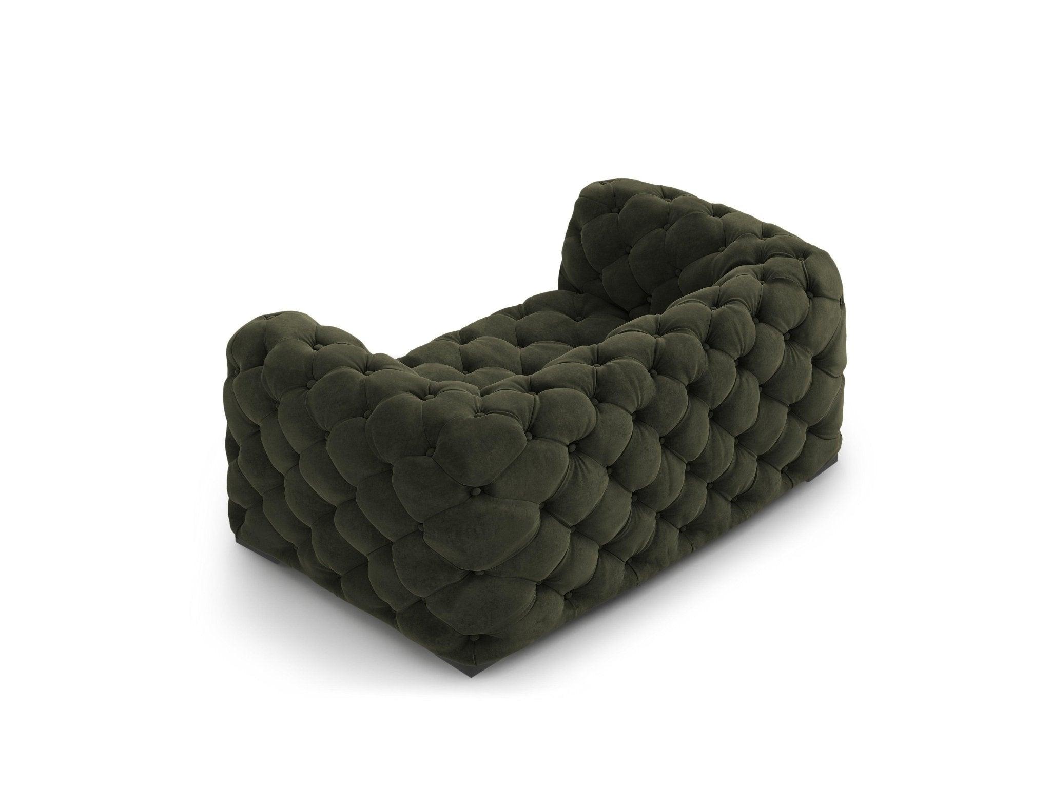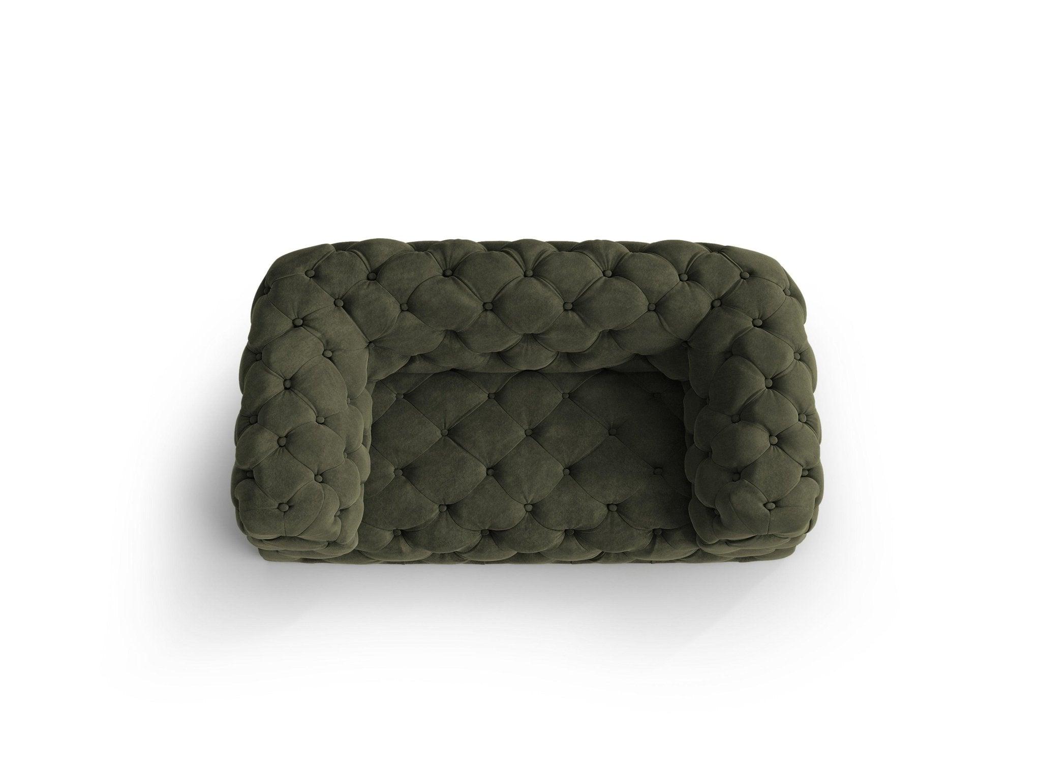 Velvet -Sessel Loge ist eine erstaunliche Kombination einer klassischen Form mit einer kleinen Pracht. Ungewöhnliches Design unterscheidet jedes Wohnzimmer und führt ein wenig Eleganz in den Raum ein. Tiefe Quilt- und zusätzliche Quadrate -fischte Nähte wurden mit dekorativen Tasten hervorgehoben.