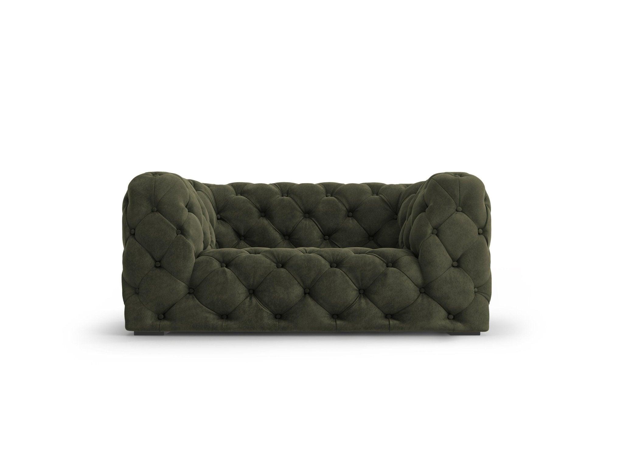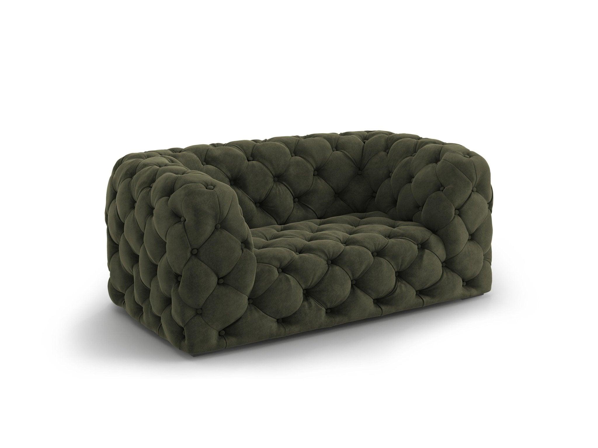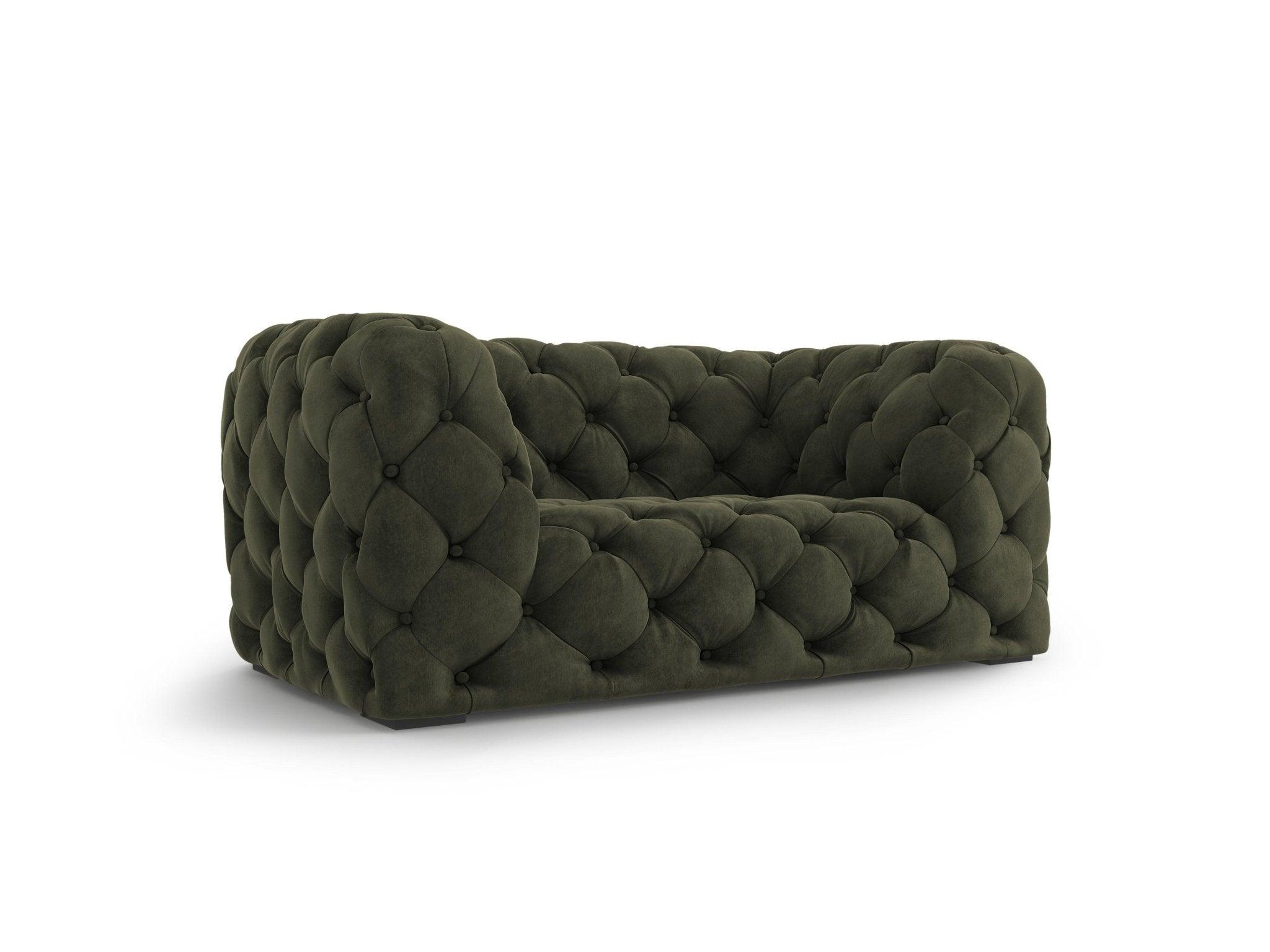 Velvet -Sessel Loge ist eine erstaunliche Kombination einer klassischen Form mit einer kleinen Pracht. Ungewöhnliches Design unterscheidet jedes Wohnzimmer und führt ein wenig Eleganz in den Raum ein. Tiefe Quilt- und zusätzliche Quadrate -fischte Nähte wurden mit dekorativen Tasten hervorgehoben.