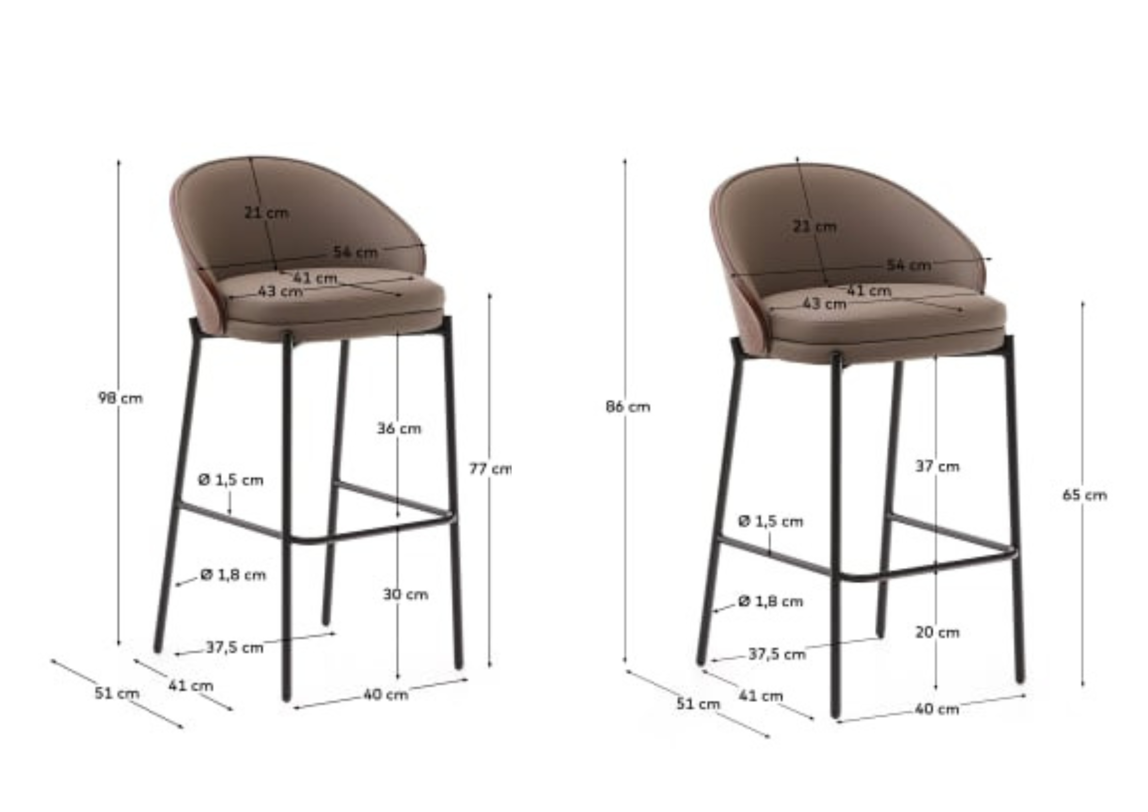 Bar Eama kombiniert Eleganz mit Funktionalität. Die Rückenlehne des Aschenfurniers in einem natürlichen Finish fügt eine subtile Klasse hinzu, und die in Beige gemalten Metallstruktur bietet einen modernen Akzent und Solidität der Struktur.
