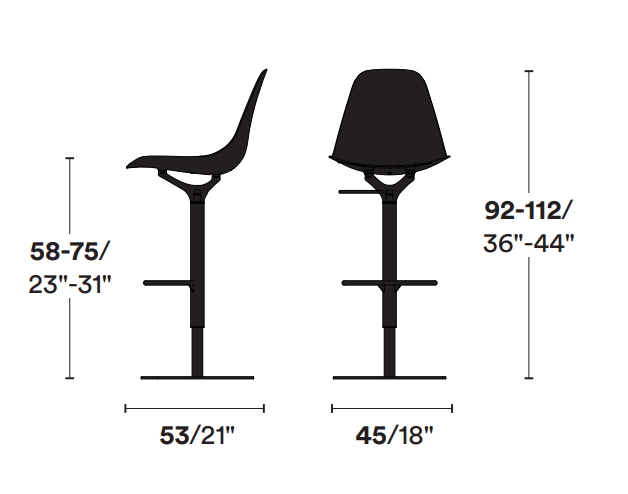 Hoker Mammamia Hocker ist ein modernes Angebot für Liebhaber funktionalen Designs und eleganter Formen. Das Design von Marcello Zilianis vereint eine dynamische Silhouette, Benutzerkomfort und die Möglichkeit der Höhenverstellung, wodurch es sowohl an einer heimischen Kücheninsel als auch in gewerblichen Räumen hervorragend zur Geltung kommt. Die integrierte Fußstütze und der drehbare Sitz erhöhen den Komfort bei der täglichen Nutzung.