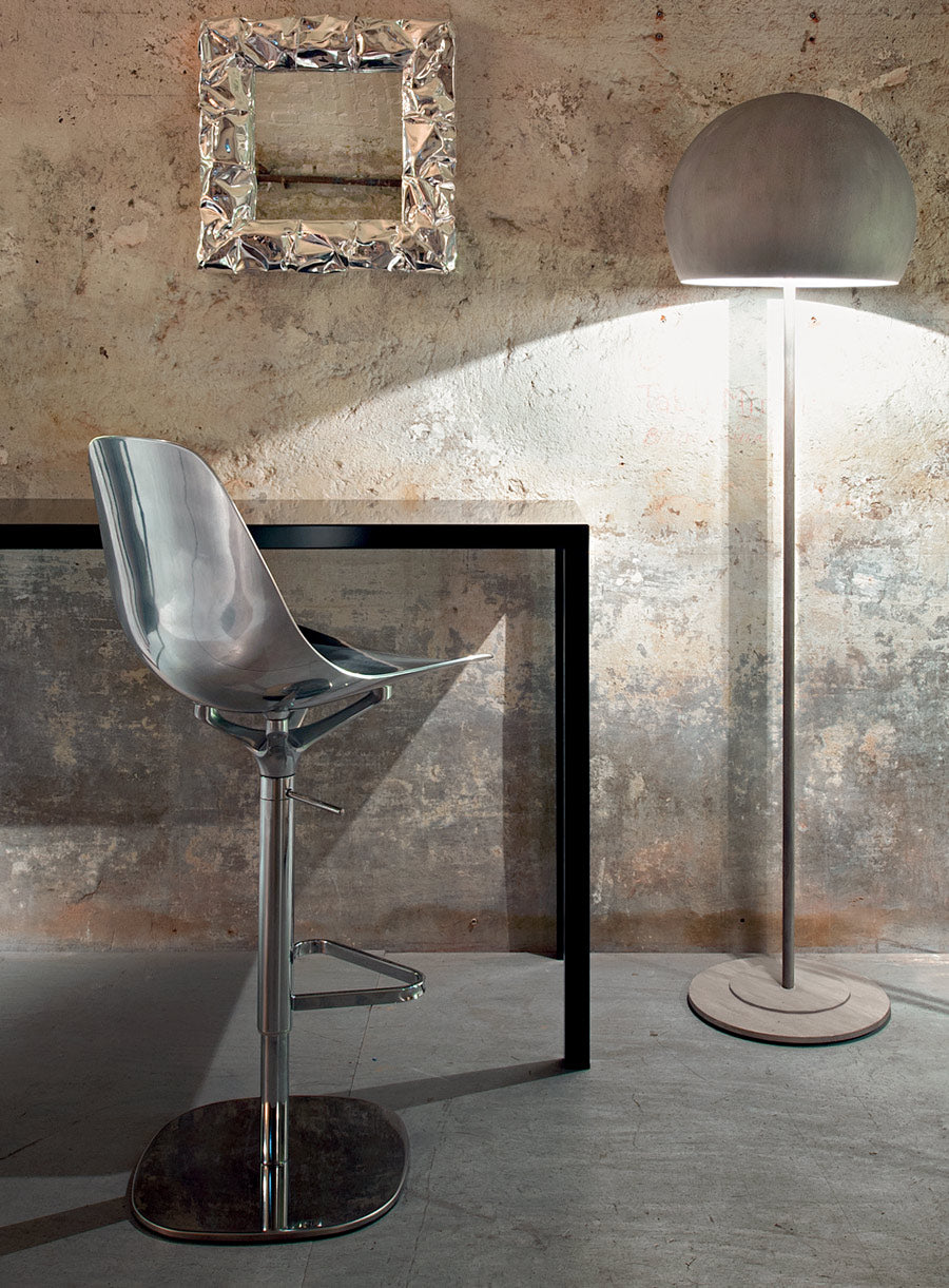Höhenverstellbarer Hocker MAMMAMIA aus poliertem Aluminium