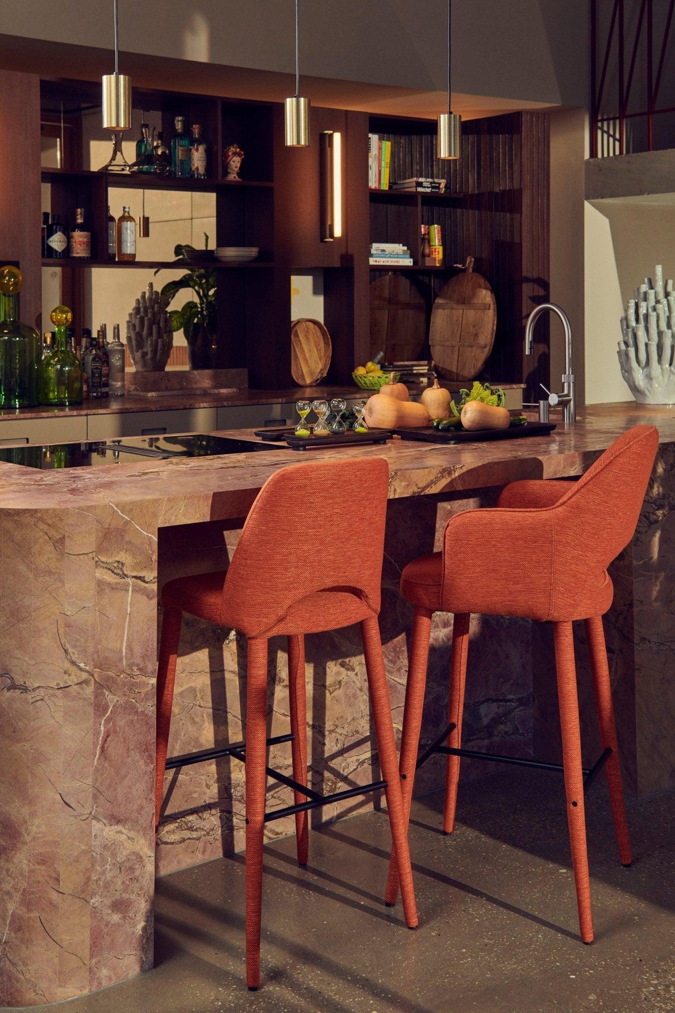 Stuhl Bar Heilig in einem intensiven Erzton bringt einen einzigartigen und einzigartigen Stil in Ihren Esszimmer. Es ist ein Stuhl, der mit seiner Eleganz und Finesse beeindruckt und den Raum einen einzigartigen Charakter verleiht. Es ist ideal, um Gäste in einer kostenlosen und eleganten Atmosphäre zu empfangen, was jede Gelegenheit einzigartig macht.