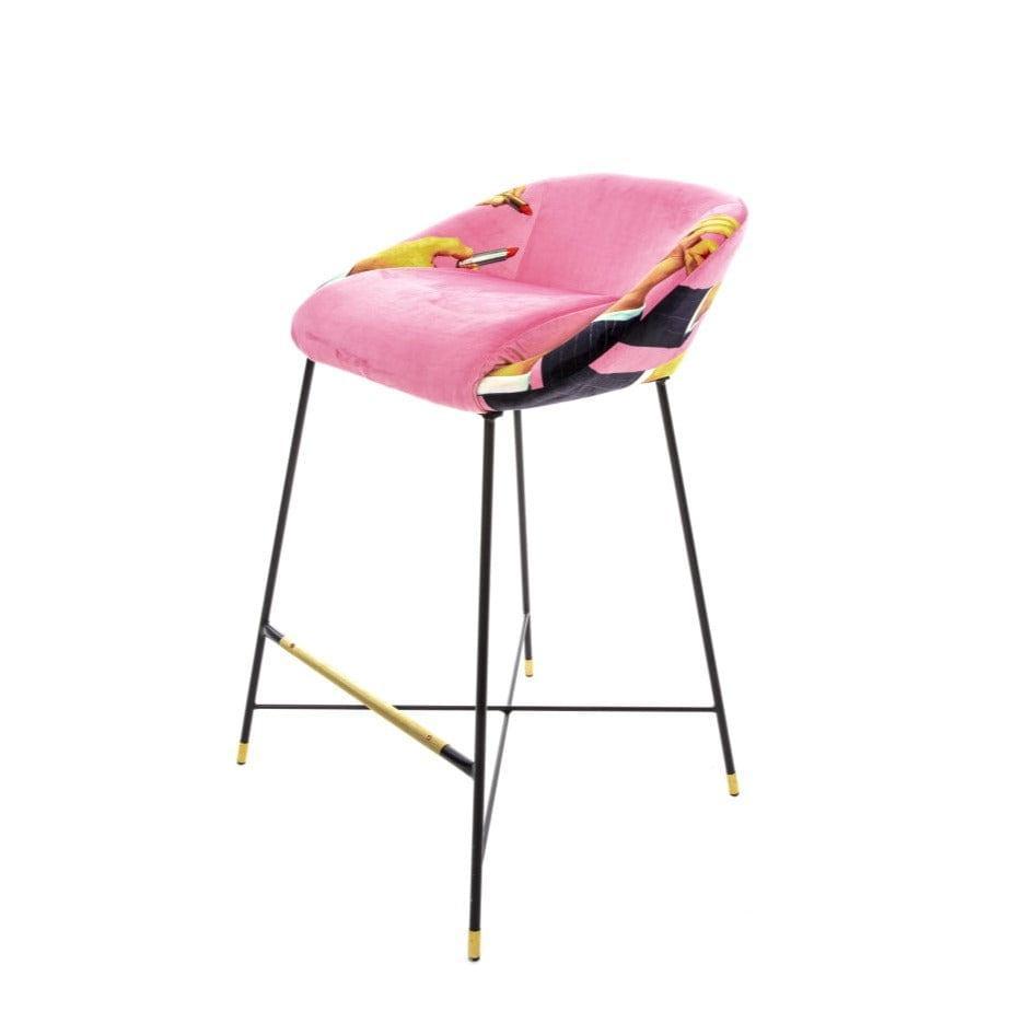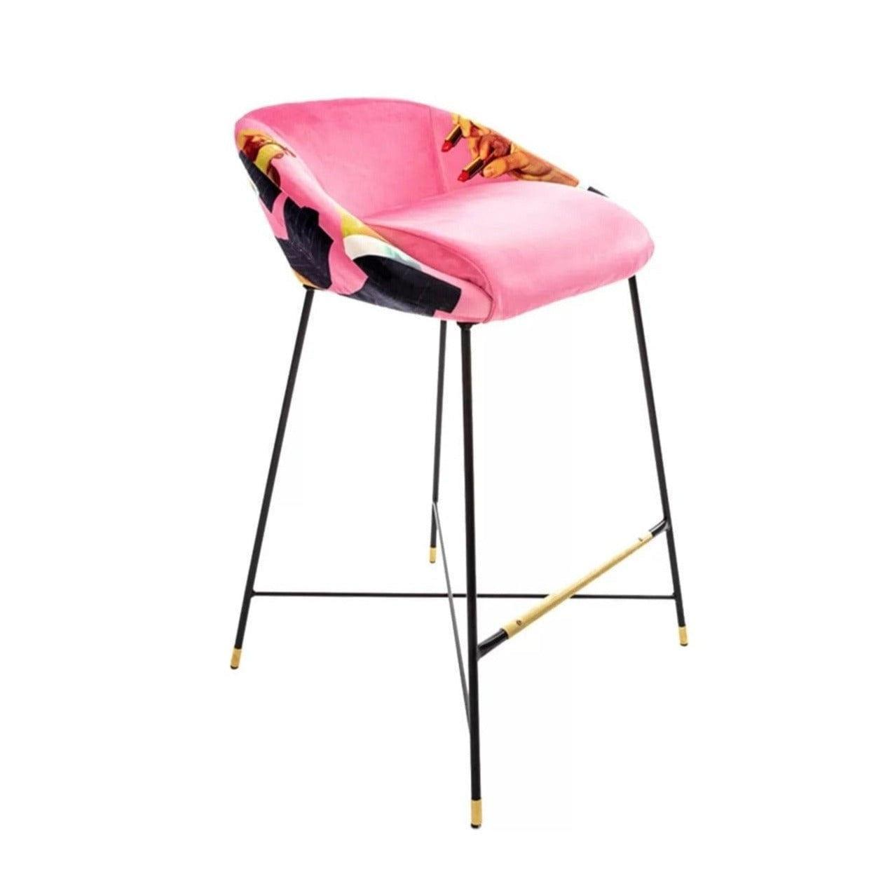 Designer Hocker Im Stil der 1950er Jahre aus dem italienischen König der Avant -Gärte - Seletti, die Wie ein Tor zu einer anderen surrealen Dimension verleiht es dem Innenraum einen einzigartigen Charakter. Polsterung mit ausdrucksstarker, dynamischer Farben und einer leicht kontroversen Collage erzeugen ein originelles Kunstwerk.