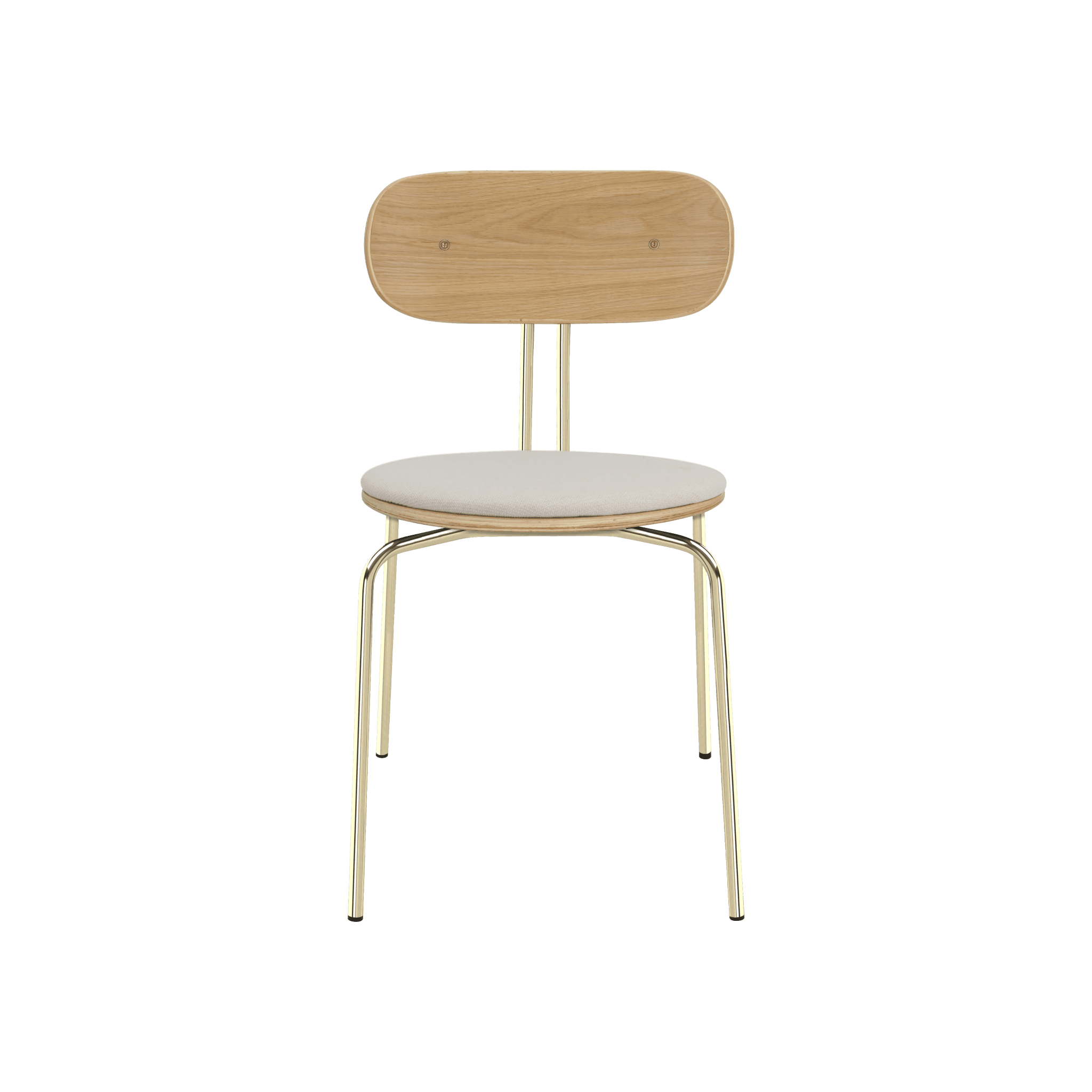 Stuhl Neugierig ist elegant, leichte und minimalistische Möbel aus Eichenfurnier. Es ist mit Messing- oder schwarzen Beinen erhältlich, und das optionale Sitzkissen bietet zusätzlichen Komfort. Sie können ein Kissen aus 17 Farben des Horizons -Stoffes auswählen, die 100% recycelt sind, sowie in einem braunen oder weißen Schatten mit Teddybärenstoff.