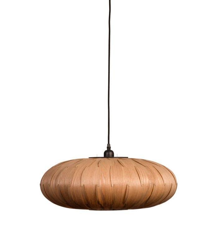 Lampe hängen Aus der Bond Oval Collection ist eine äußerst interessante Beleuchtung, die sich durch das ungewöhnliche Design auf der Grundlage eines Holzlampenschirms aus Aschefurnier auszeichnet. Dieses Modell verleiht dem Innenraum eine warme und gemütliche Atmosphäre und lenkt auch das von der Glühbirne emittierte Licht so ab, dass es eine Atmosphäre gibt.