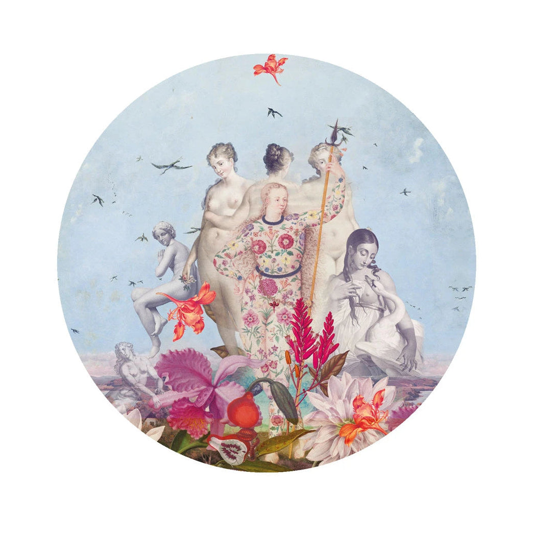 Wandbild in Kreisform DOTS - FAUNA FRESCO gedämpftes Blau