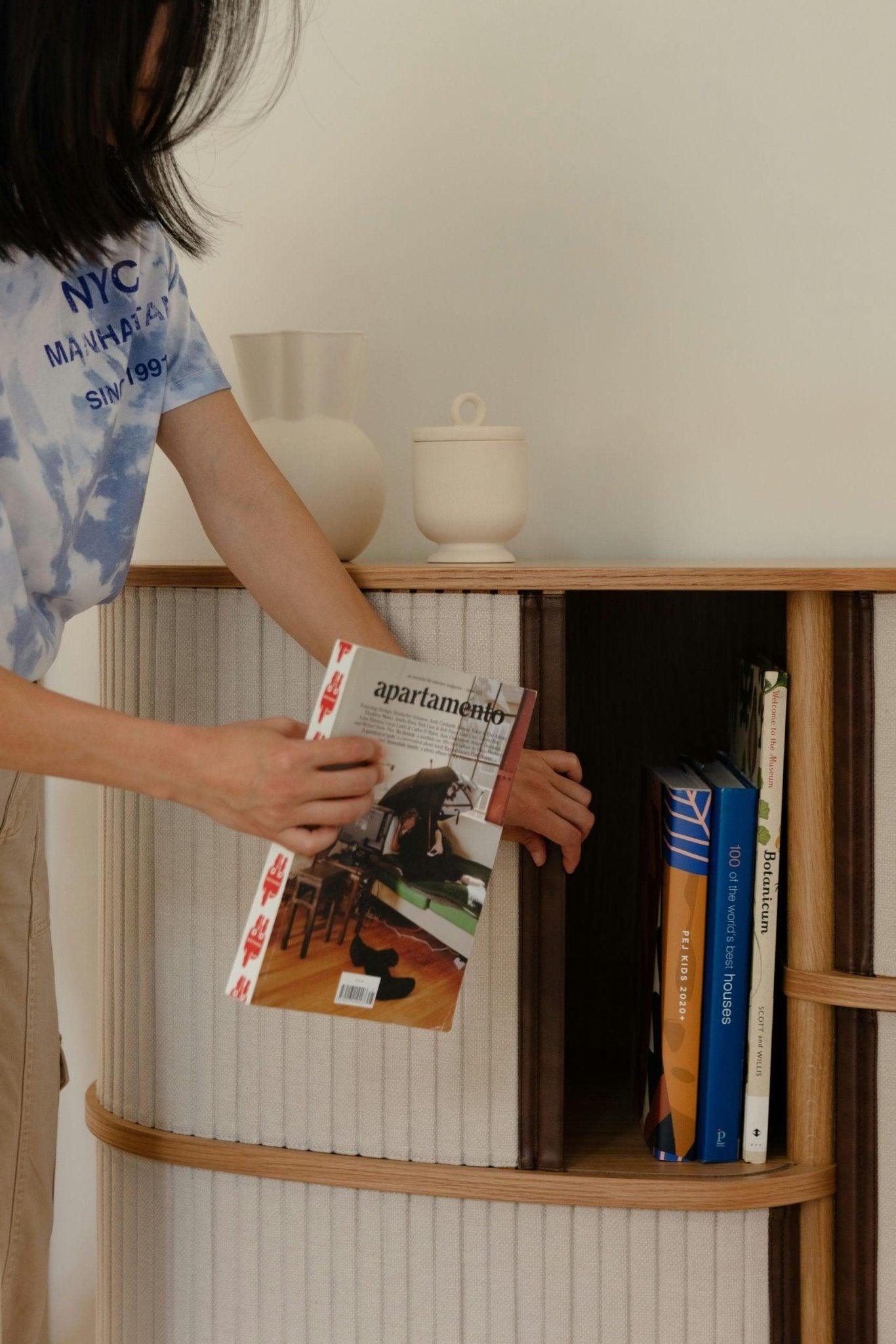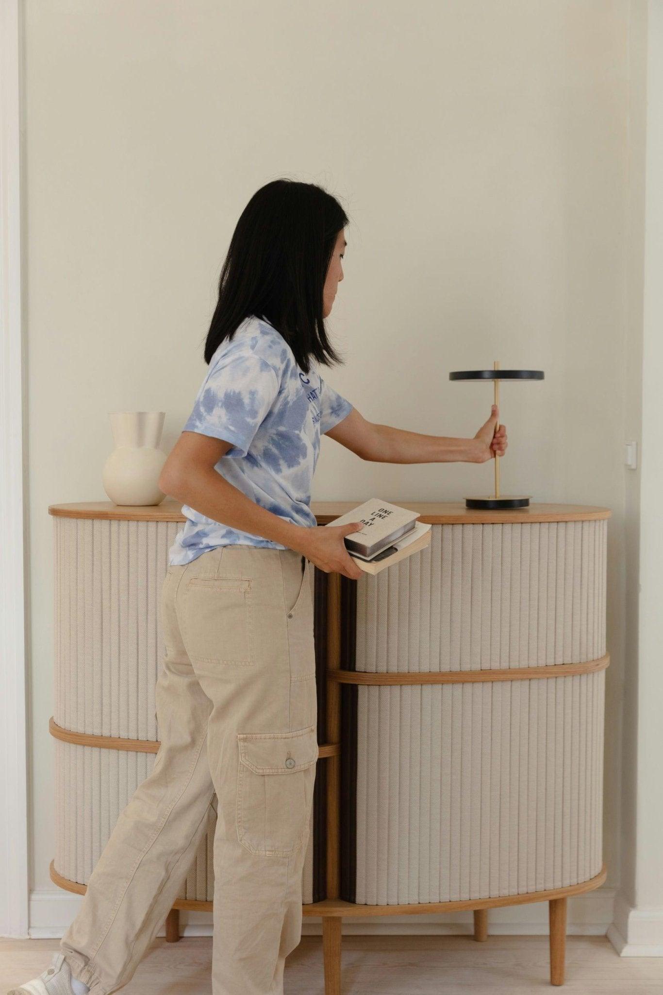 Die audrisierten Sideboard -Jalousien können leicht ersetzt werden, wodurch Sie das Aussehen der Möbel auffrischen können, ohne dass ein völlig neuer Kauf gekauft werden muss. Dank dessen sparen Sie natürliche Ressourcen und erweitern die Nützlichkeit der Möbel.