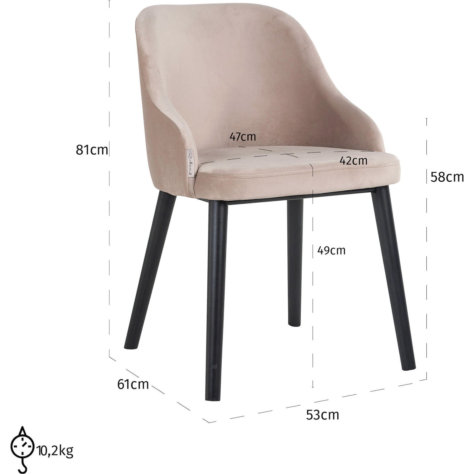 Aksamitna tkanina welurowa jest niezwykle uniwersalna, dzięki czemu krzesło Twiggy doskonale komponuje się z różnymi aranżacjami wnętrz, dodając im szlachetności i elegancji. Ponadto welur jest wyjątkowo wytrzymały, co gwarantuje długotrwałą trwałość mebla. W połączeniu z beżowym kolorem tkaniny, krzesło prezentuje się niezwykle estetycznie, nadając wnętrzom przytulnego i luksusowego charakteru.