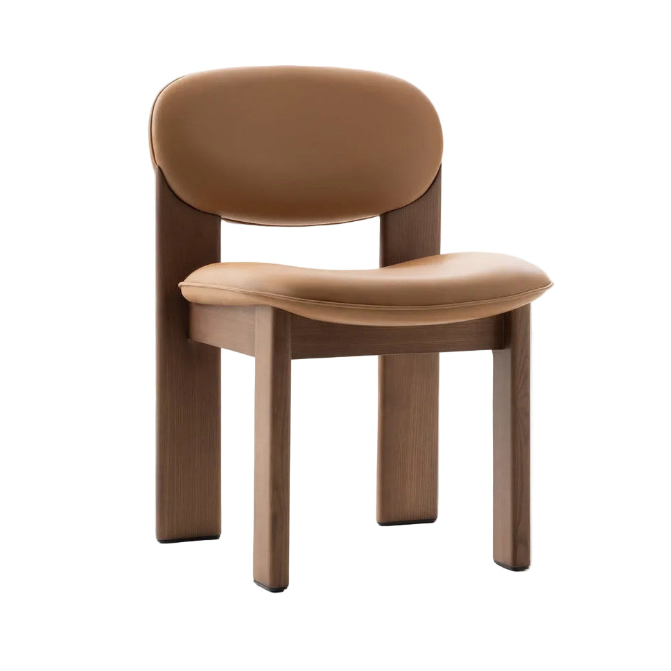 Nelids Stuhl hellbrauner Szenil mit einer hölzernen Basis