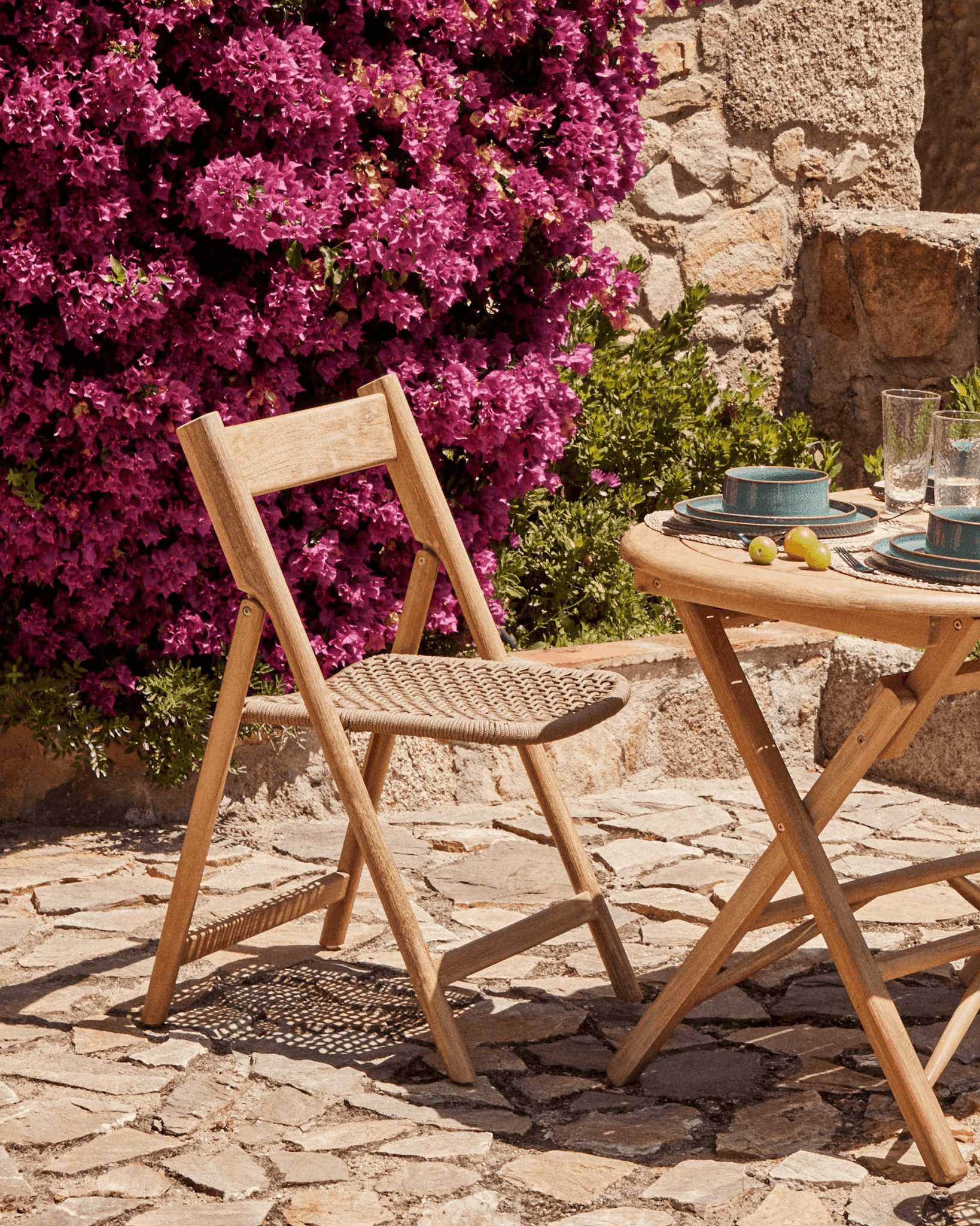 Krzesło składane DANDARA lite drewno akacjowe z beżowym siedziskiem La Forma    Eye on Design
