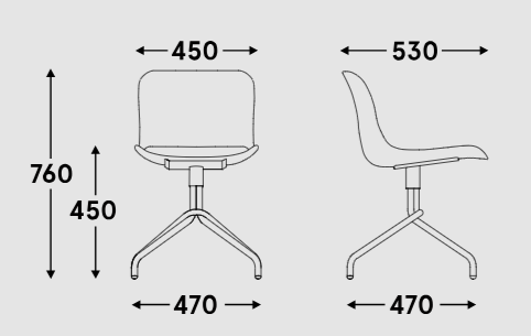 Basis: 4 -Metall, pulvermalt, Rotationssitz - 360 °, Beine aus dem Rohr Ø22 mm, Kunststofffüße;