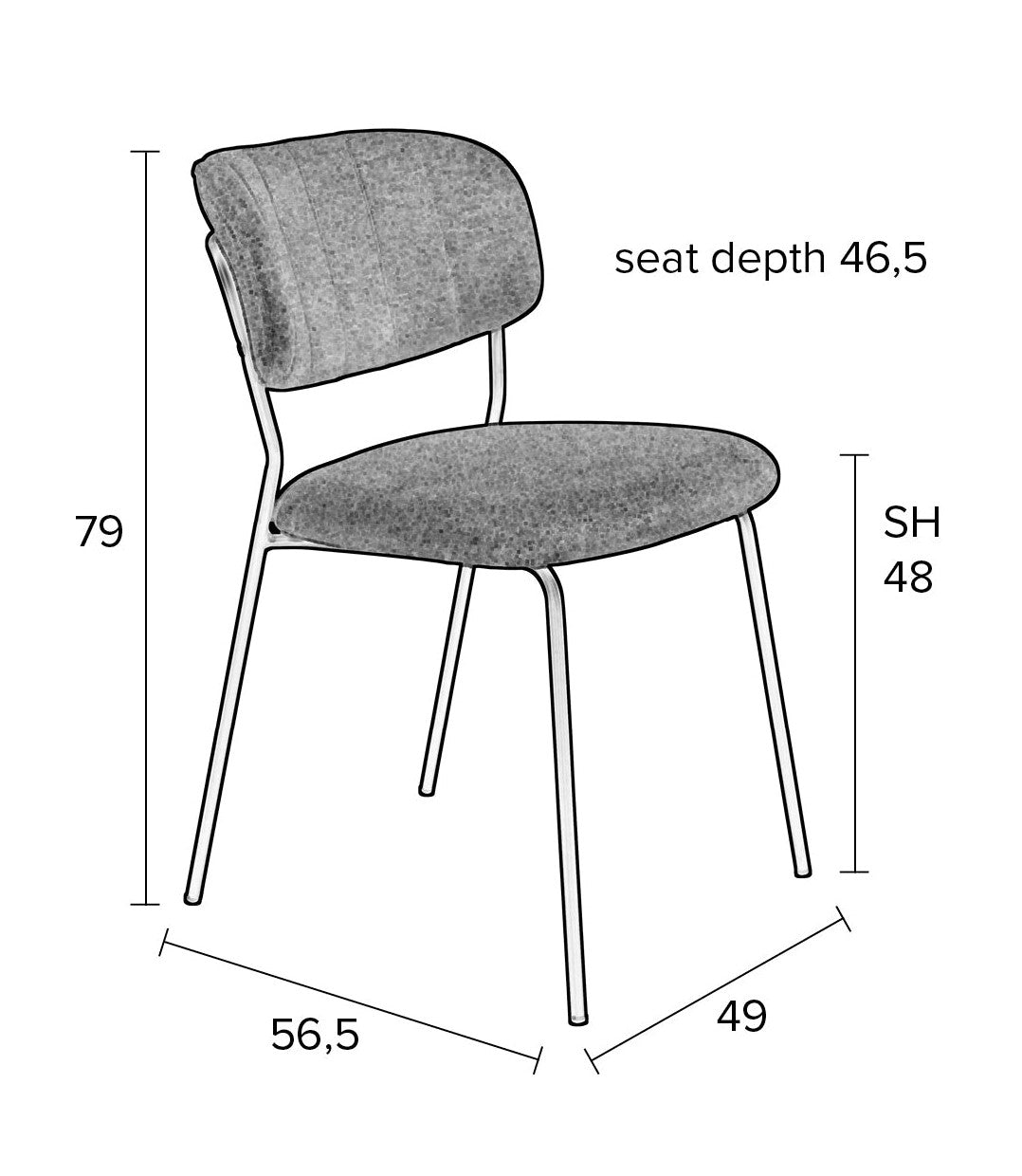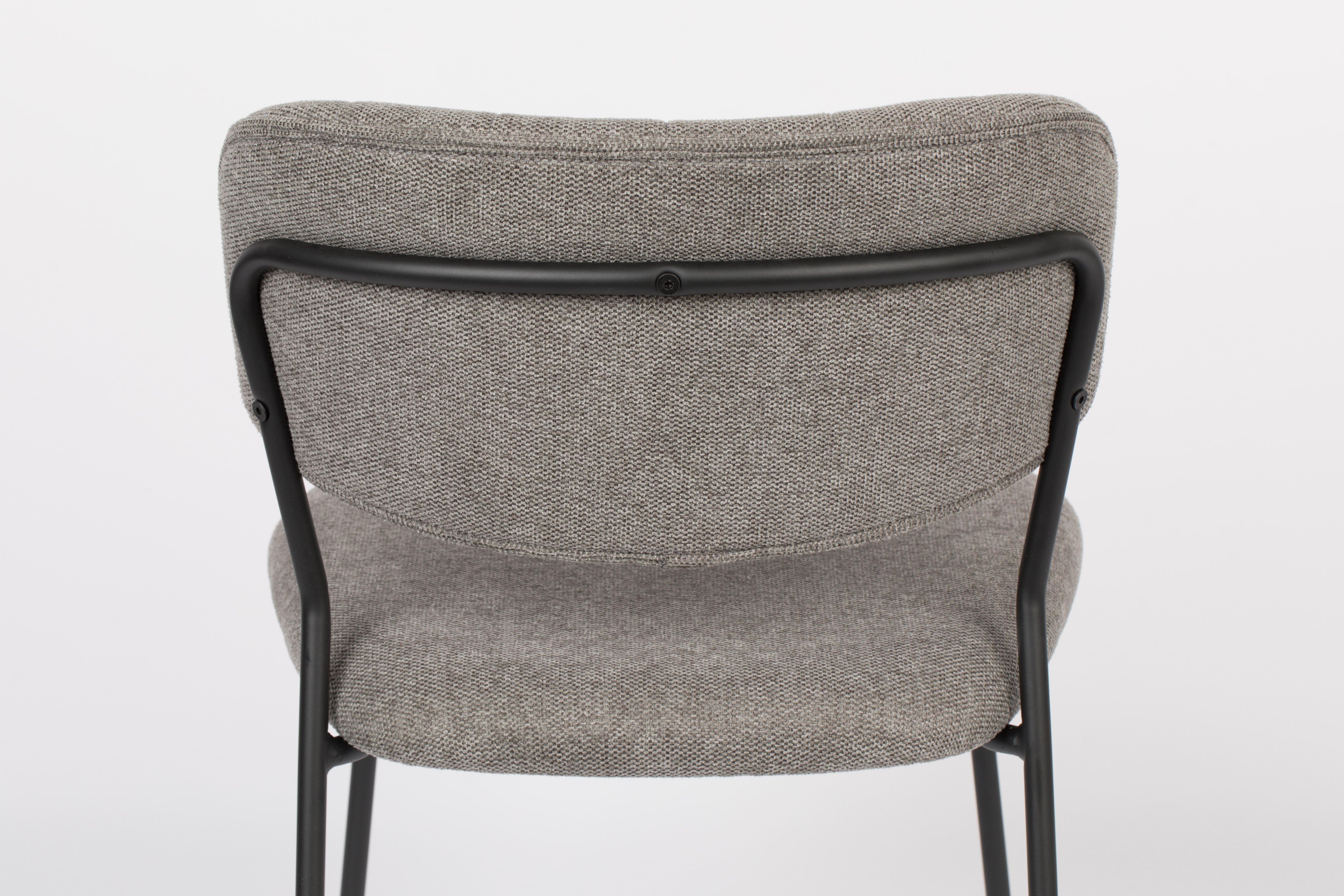 Stuhl Jolien ist eine ideale Ergänzung zu einem modernen Innenraum und passt sowohl zum Speisesaal als auch zum Wohnzimmer oder in Frauenbüro. Eleganz wird durch schwarze Metallbeine betont, die Stabilität und Tiefe gewährleistet. Die einfache Form des Stuhls harmoniert mit grauen Polsterung und erleichtert es, in verschiedene Arrangements zu passen.