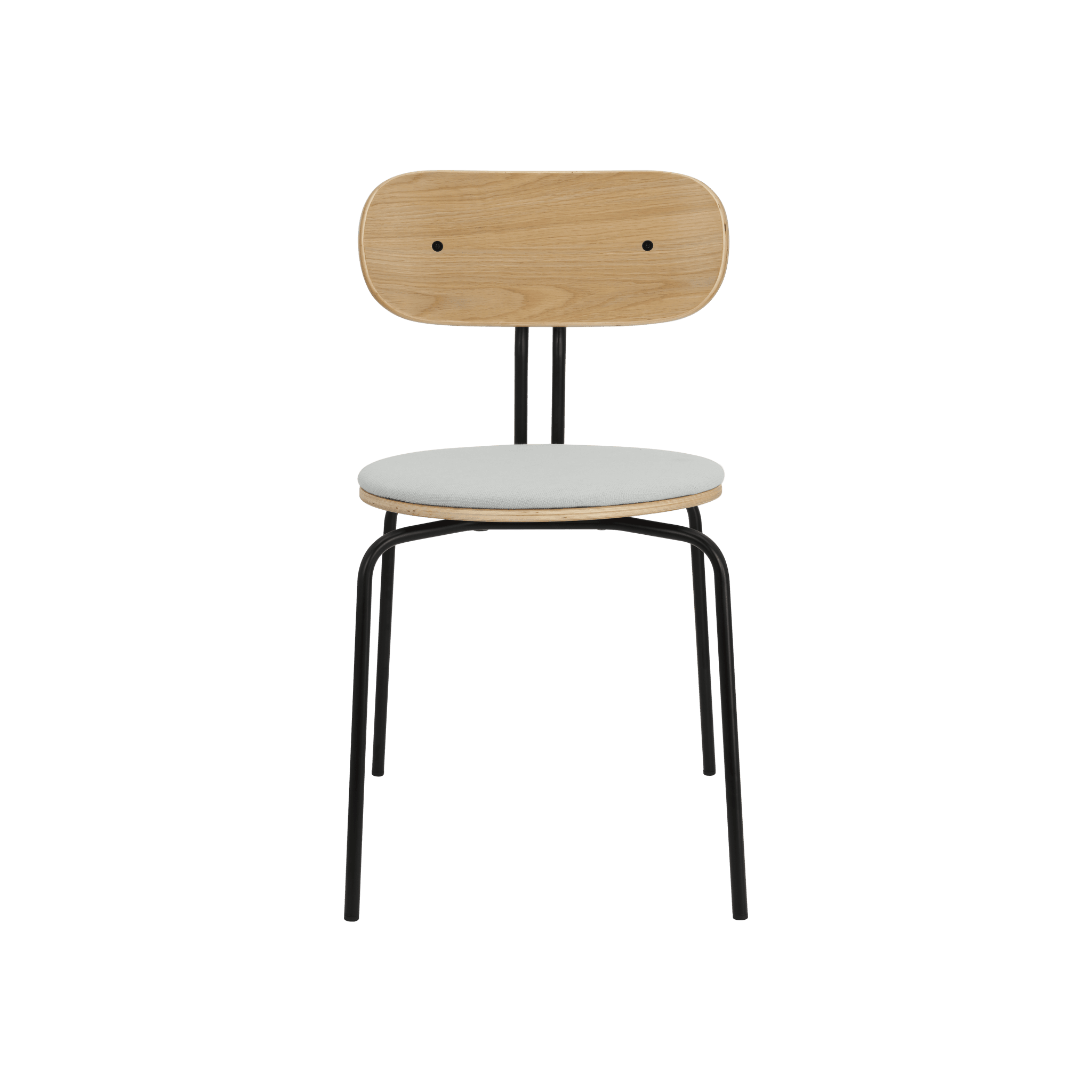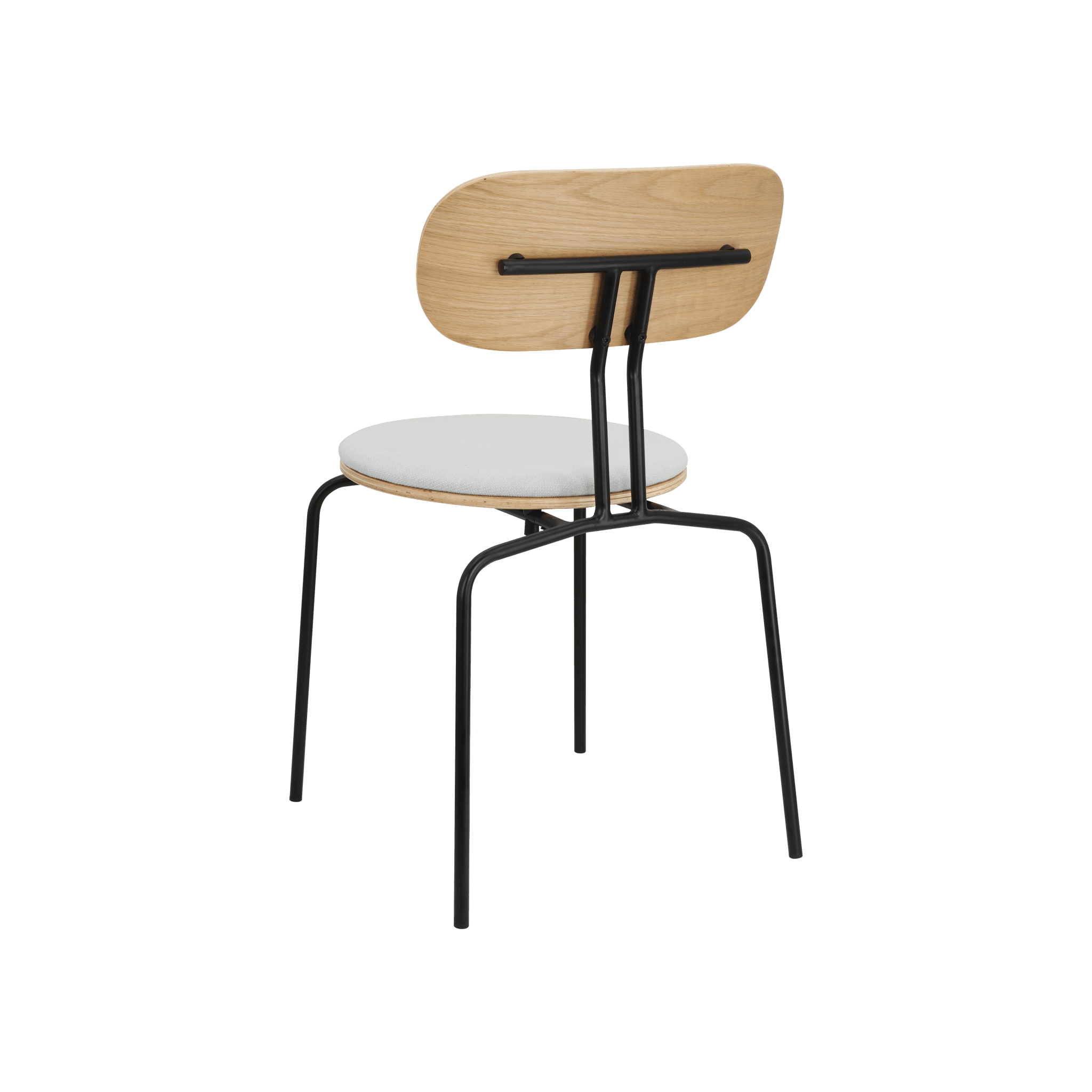 Stuhl Neugierig ist elegant, leichte und minimalistische Möbel aus Eichenfurnier. Es ist mit Messing- oder schwarzen Beinen erhältlich, und das optionale Sitzkissen bietet zusätzlichen Komfort. Sie können ein Kissen aus 17 Farben des Horizons -Stoffes auswählen, die 100% recycelt sind, sowie in einem braunen oder weißen Schatten mit Teddybärenstoff.