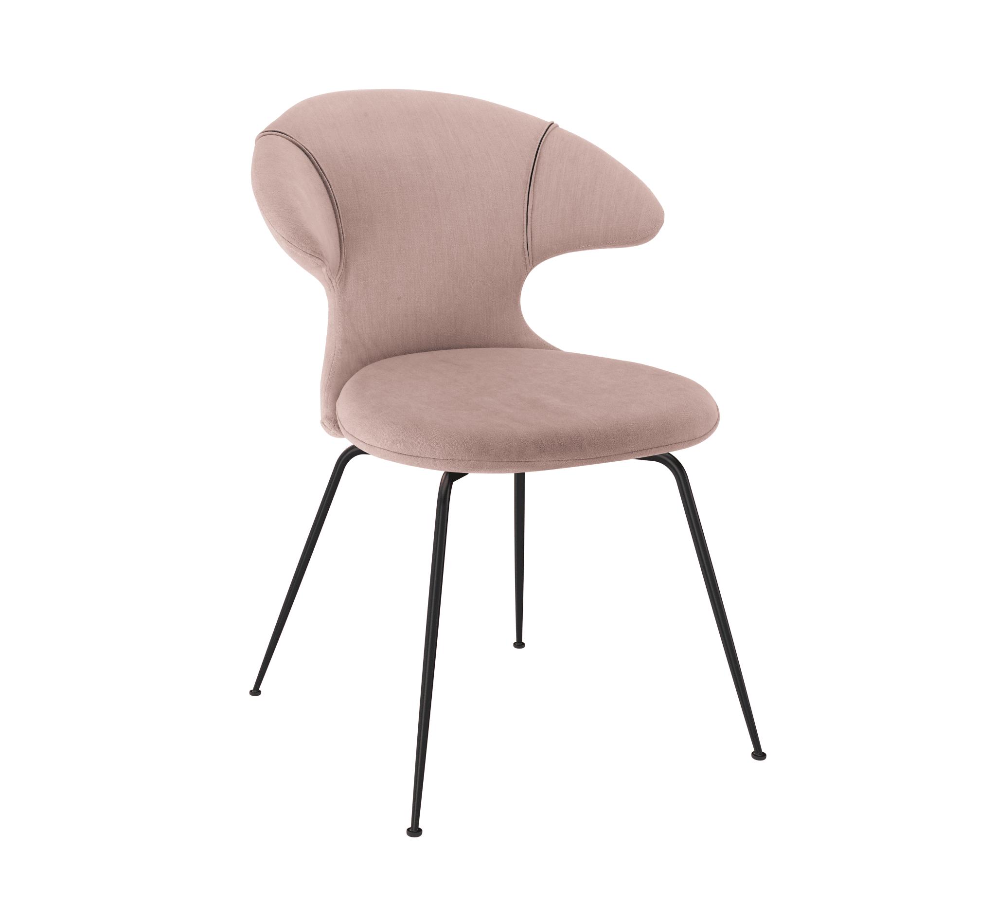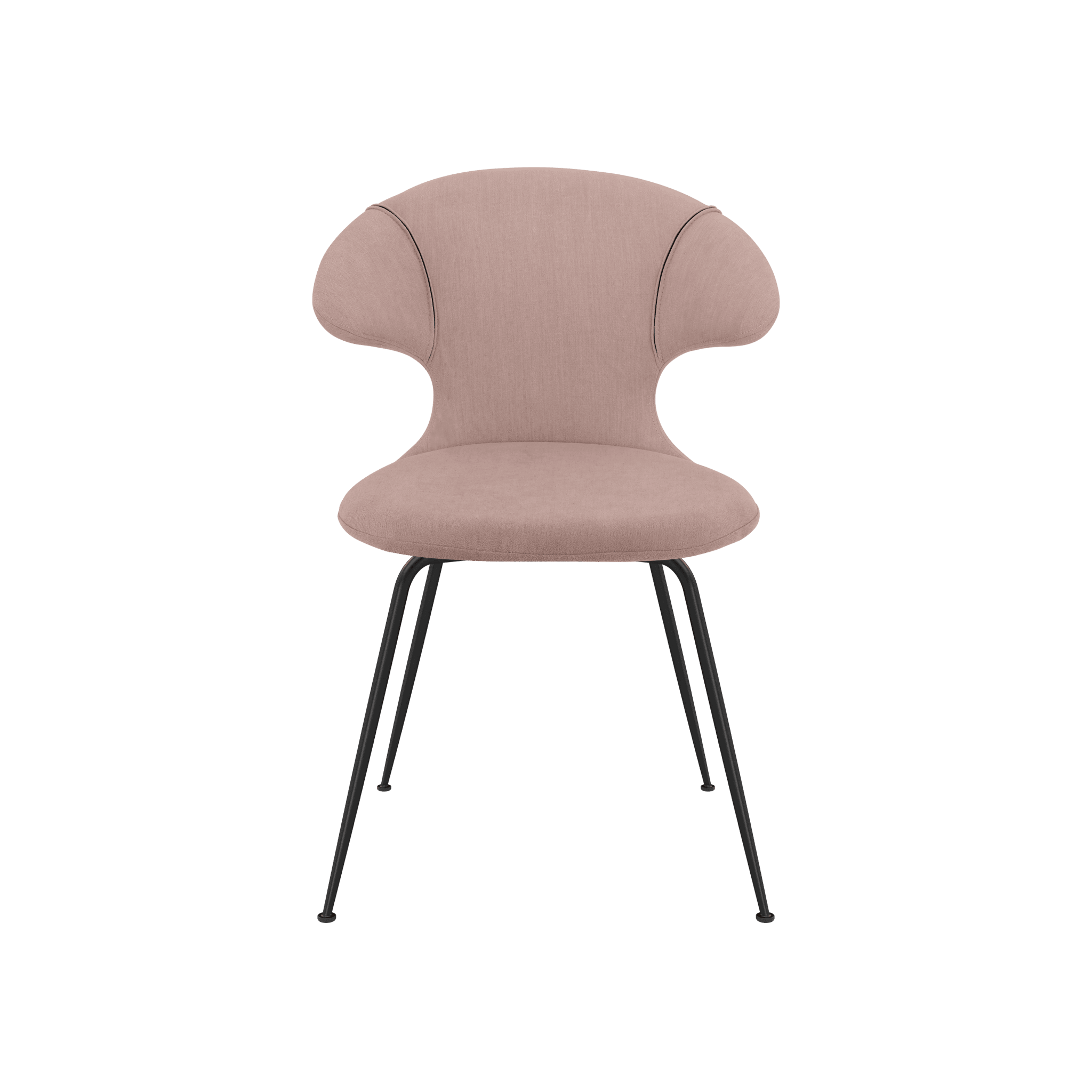 Time Flyies Pulver Rose Stuhl mit einer schwarzen Basis
