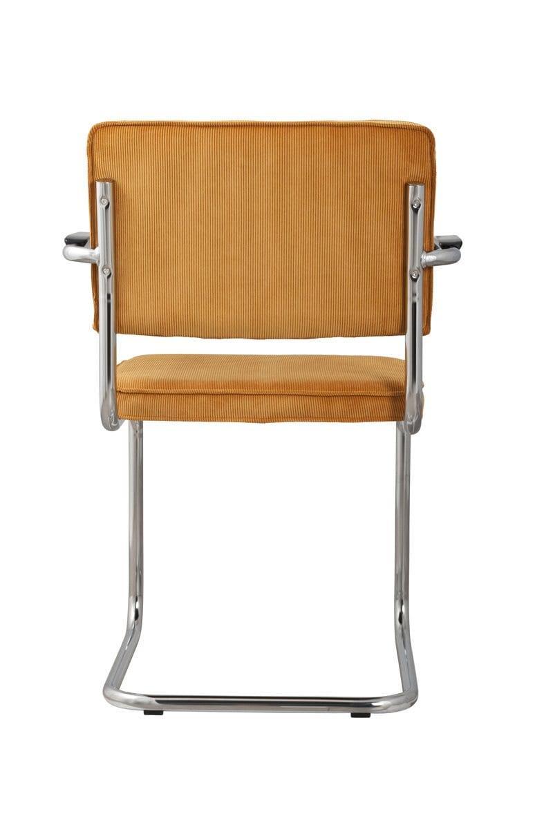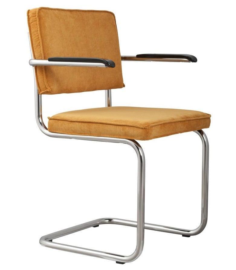 Gratrippe ist zeitlos Stuhl, welche unterscheidet Ungewöhnlicher Rahmen. Cord, gelb Finishing und Basis eines Skid -Typs aus Chrommetall erzeugen eine erstaunliche Vintage -Kombination mit modernem Design.