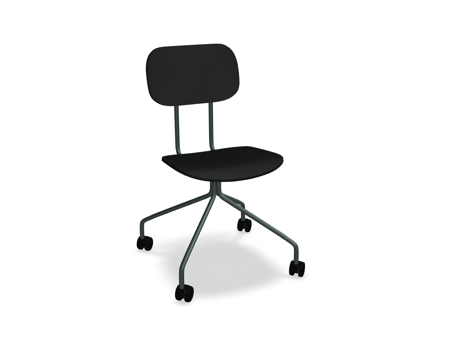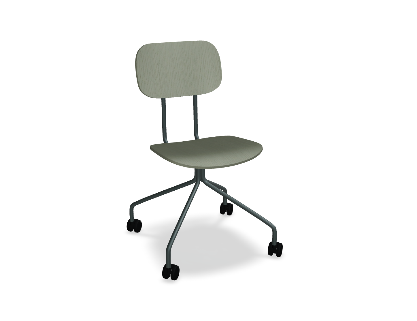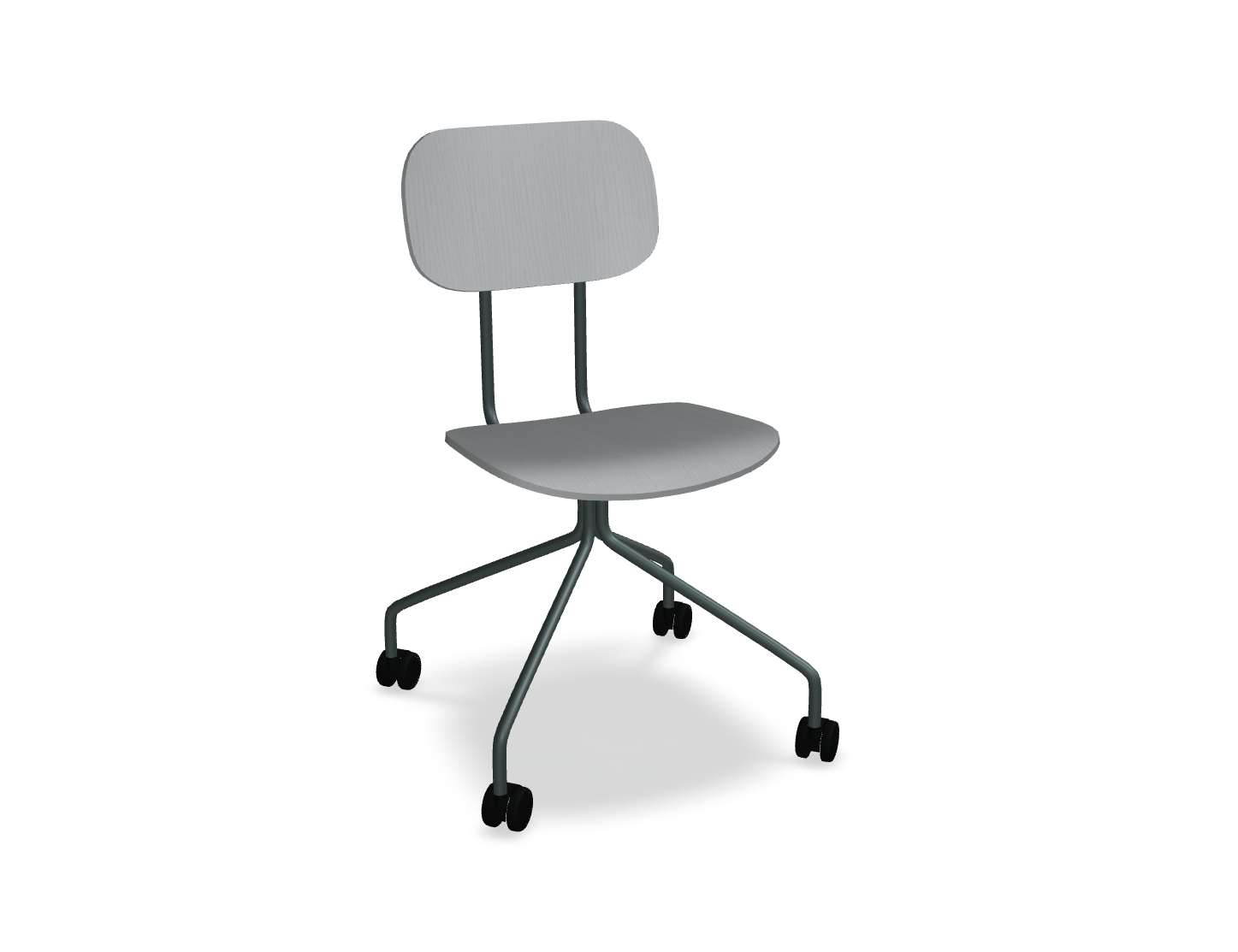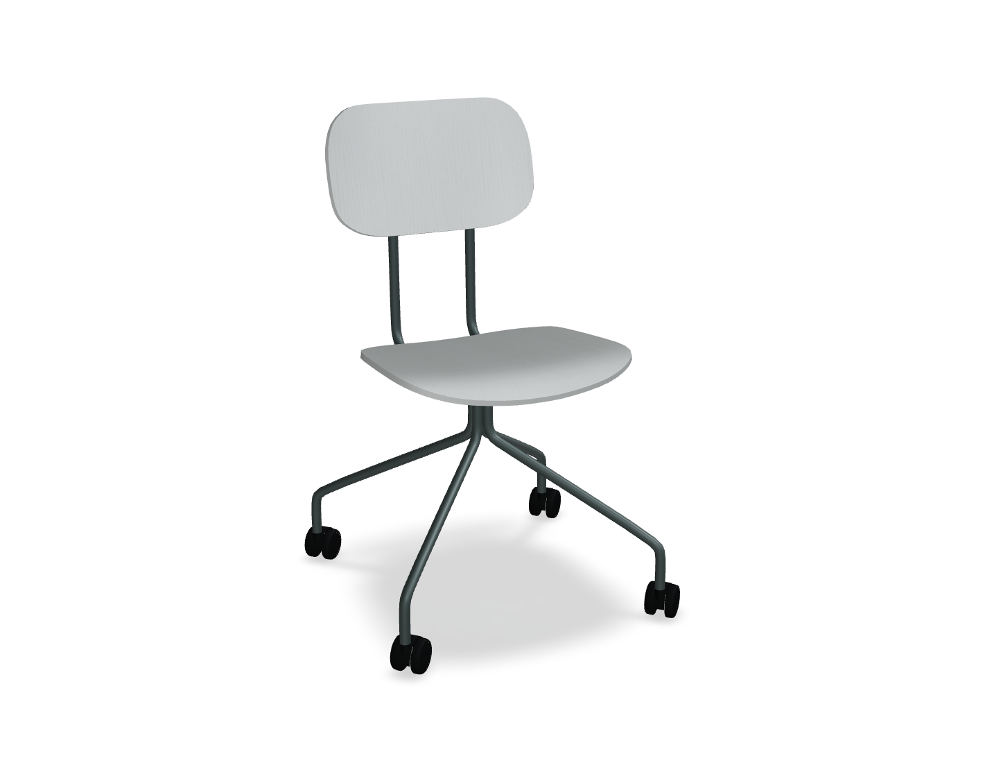 Stuhl Es ist mit einem einfachen Sperrholzsitz erhältlich, was sie ideal für den Raum macht, bei dem sich Benutzer häufig ändern. Die Höhe des Sitzes - 460 mm -, der auf Standardtische zugeschnitten ist, bietet Komfort, und die mobile Basis auf Rädern ermöglicht die freie Bewegung und die Anpassung der Position an die individuellen Bedürfnisse des Benutzers.