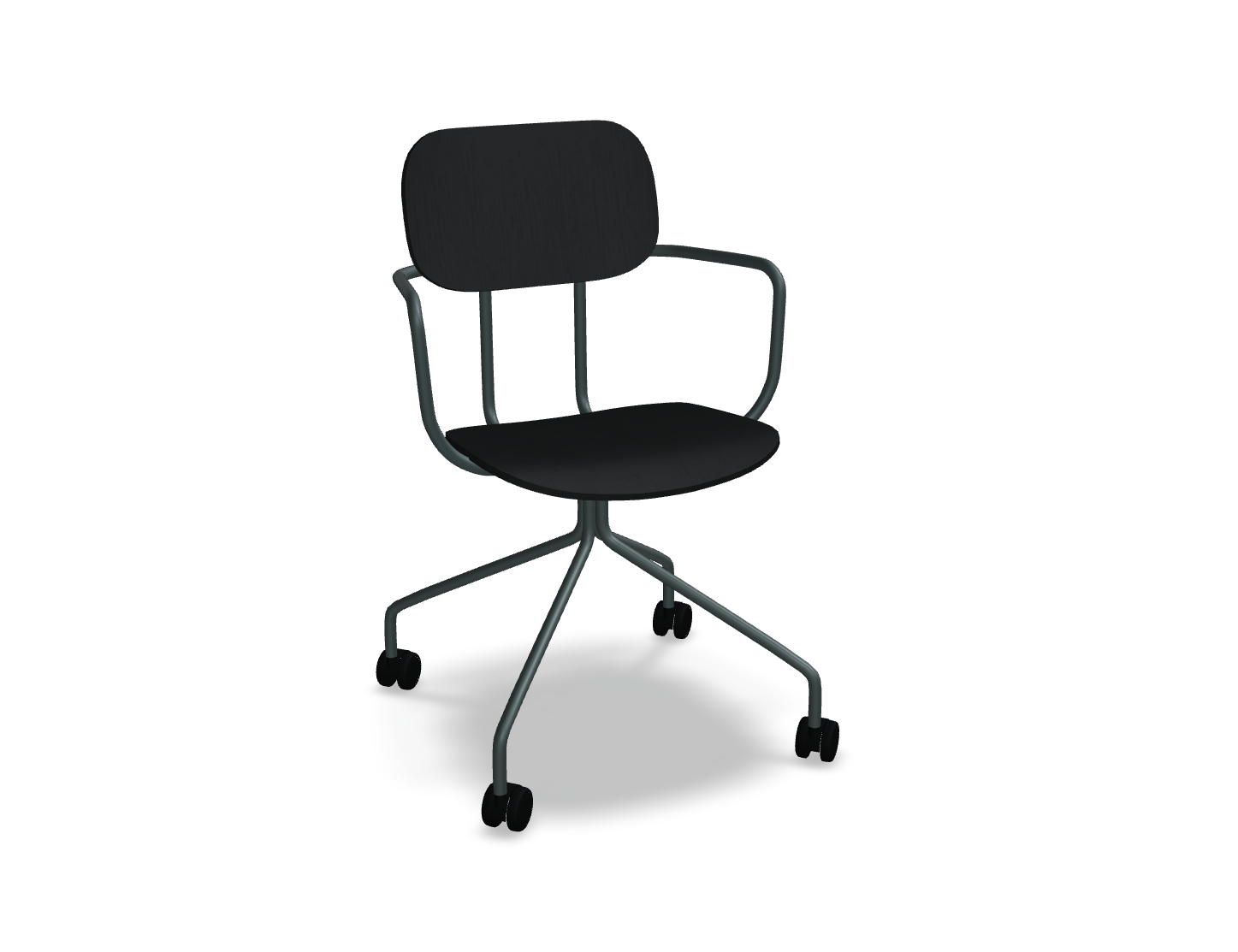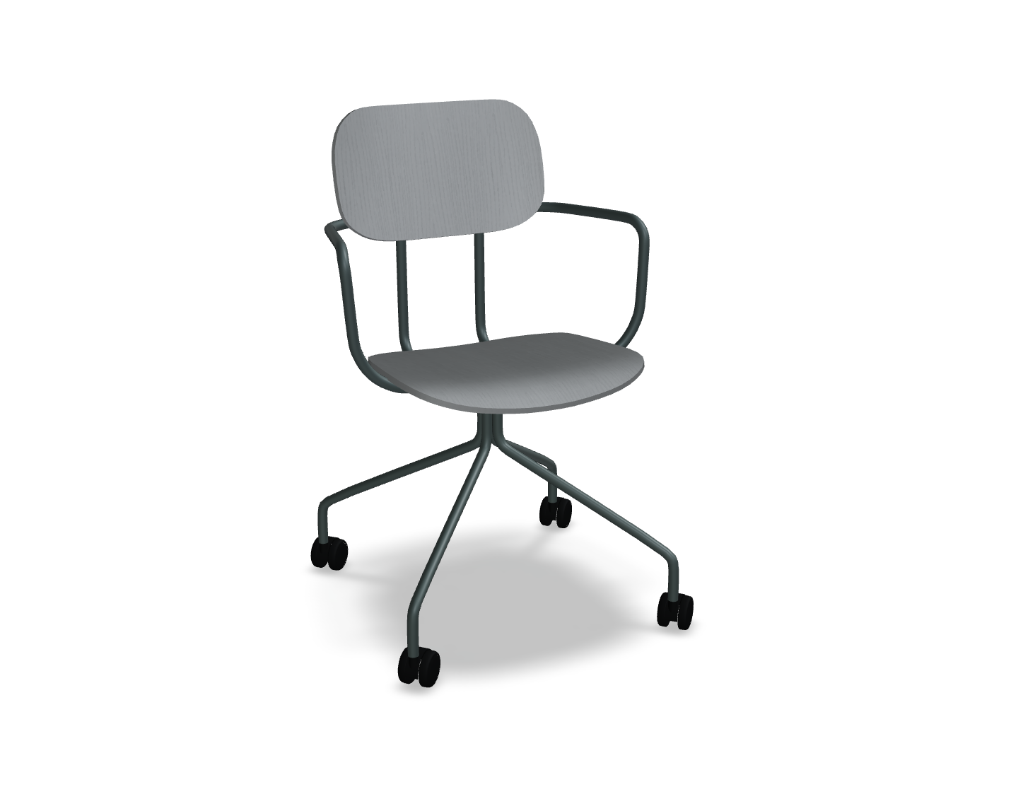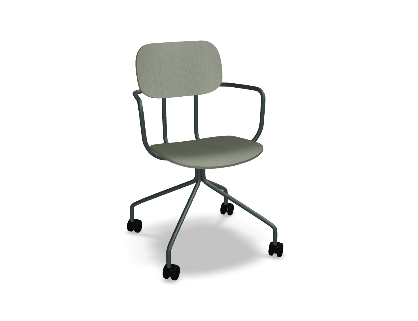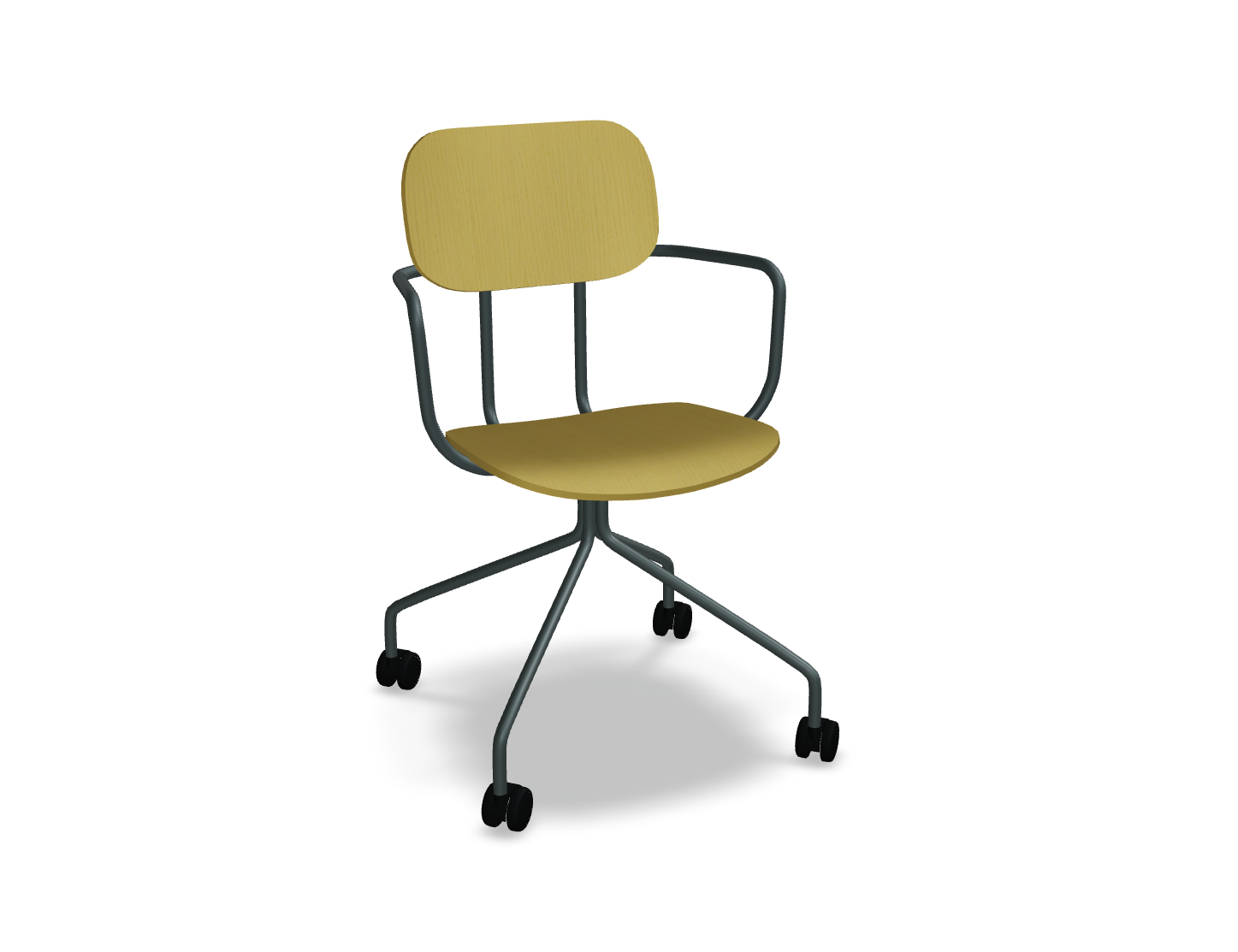 Stuhl Es ist mit einem einfachen Sperrholzsitz erhältlich, was sie ideal für den Raum macht, bei dem sich Benutzer häufig ändern. Die Höhe des Sitzes - 460 mm -, der auf Standardtische zugeschnitten ist, bietet Komfort, und die mobile Basis auf Rädern ermöglicht die freie Bewegung und die Anpassung der Position an die individuellen Bedürfnisse des Benutzers.