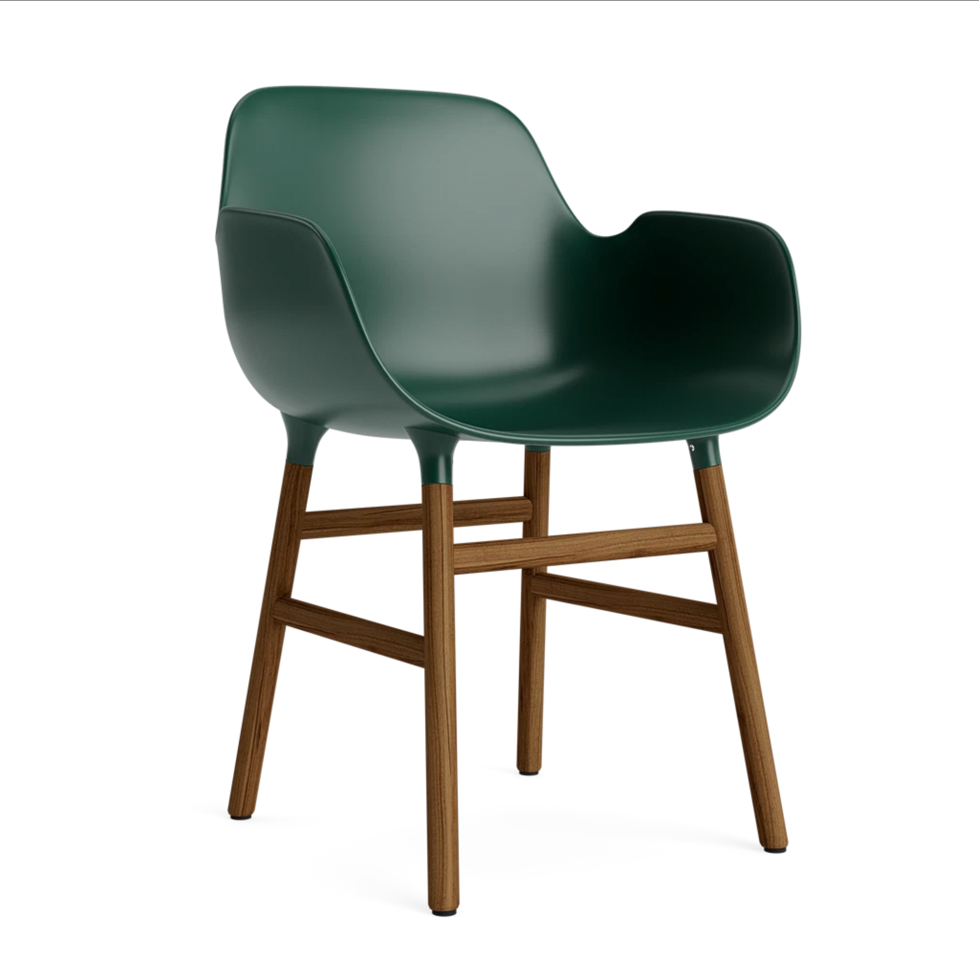 Stuhl mit Armlehnen von grünen Formen mit einer nussigen Basis