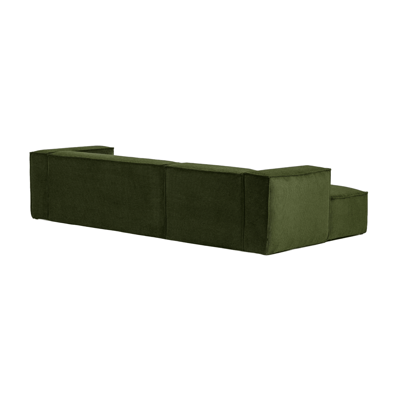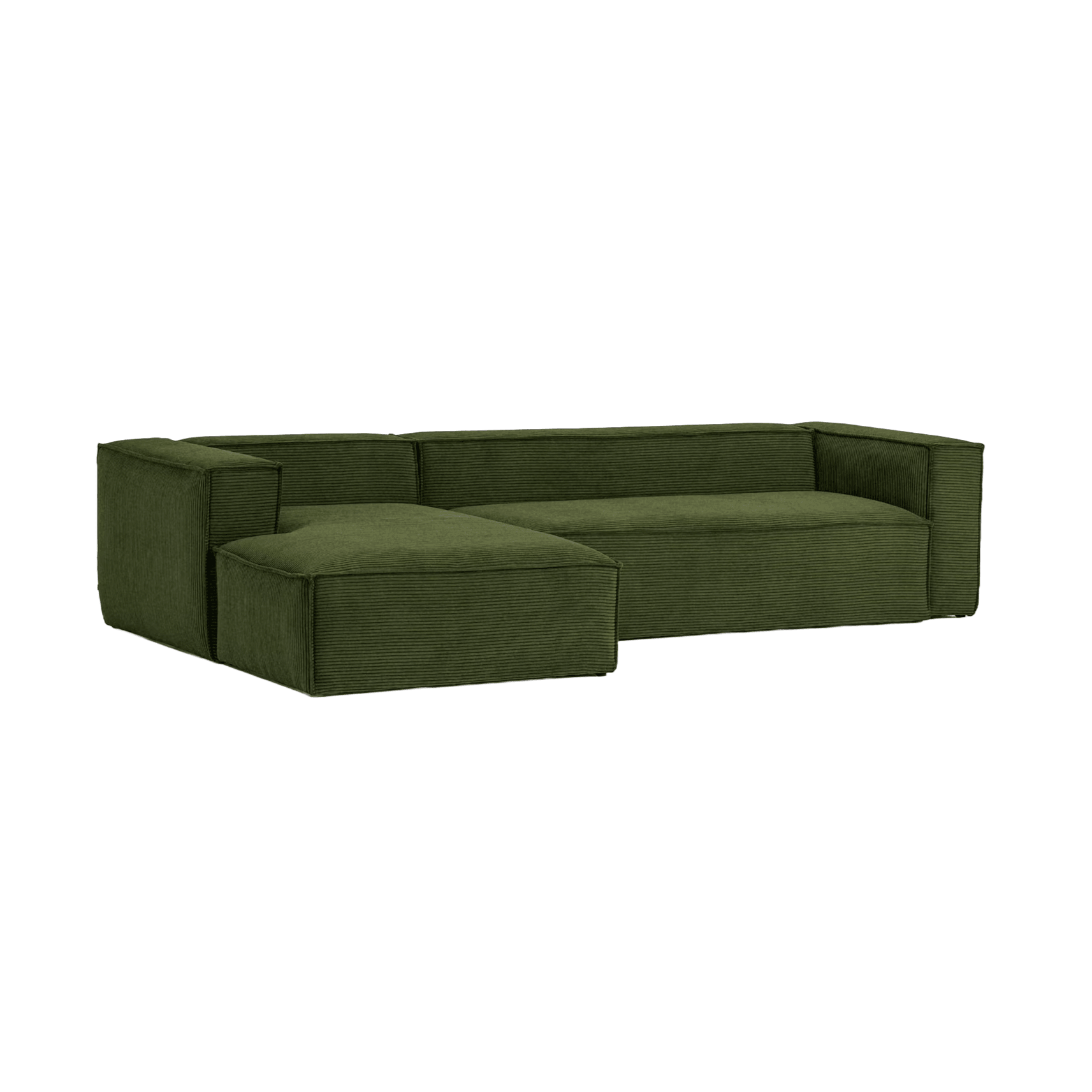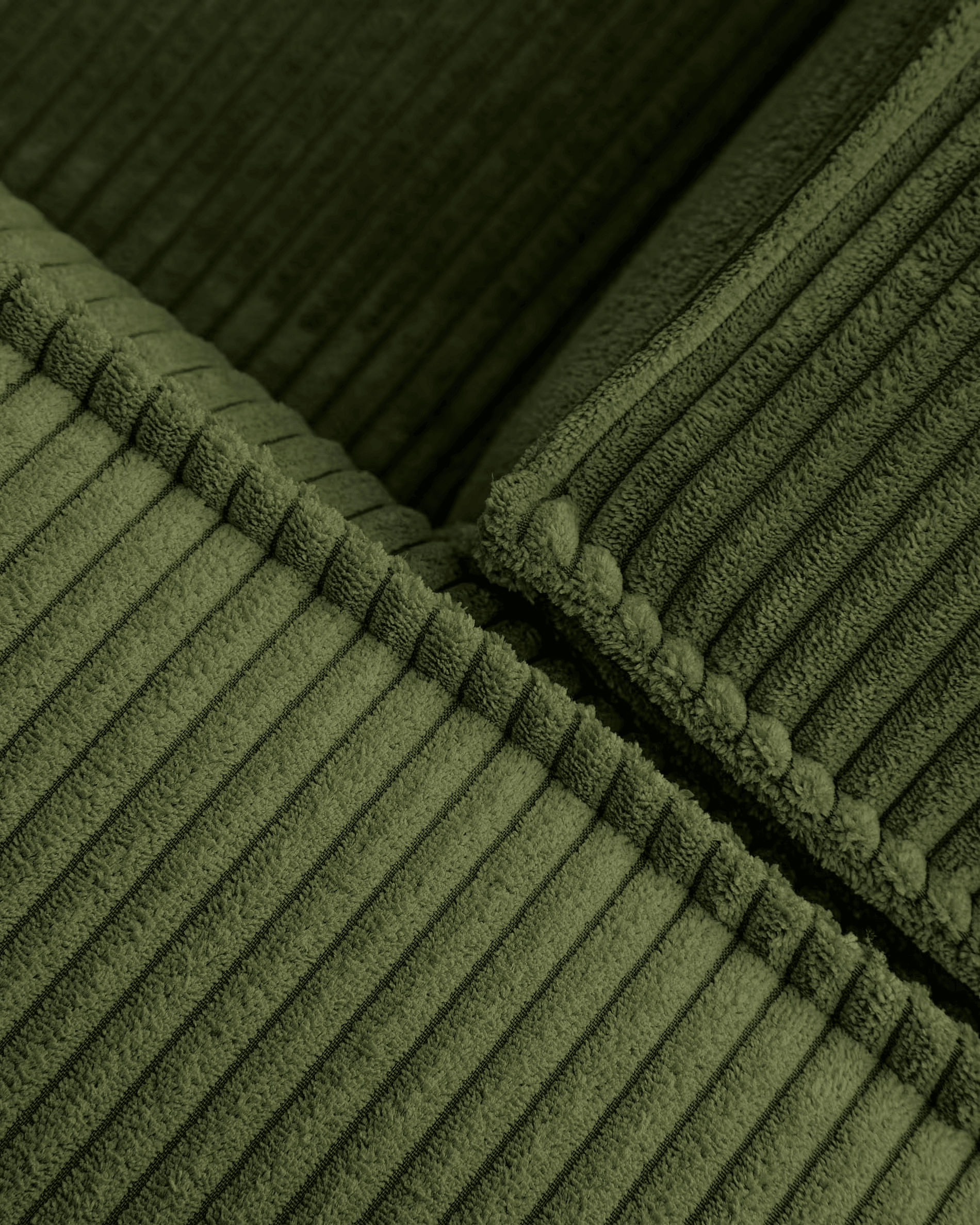 3-Personen-linksseitige Ecke, grüner Cord-Block