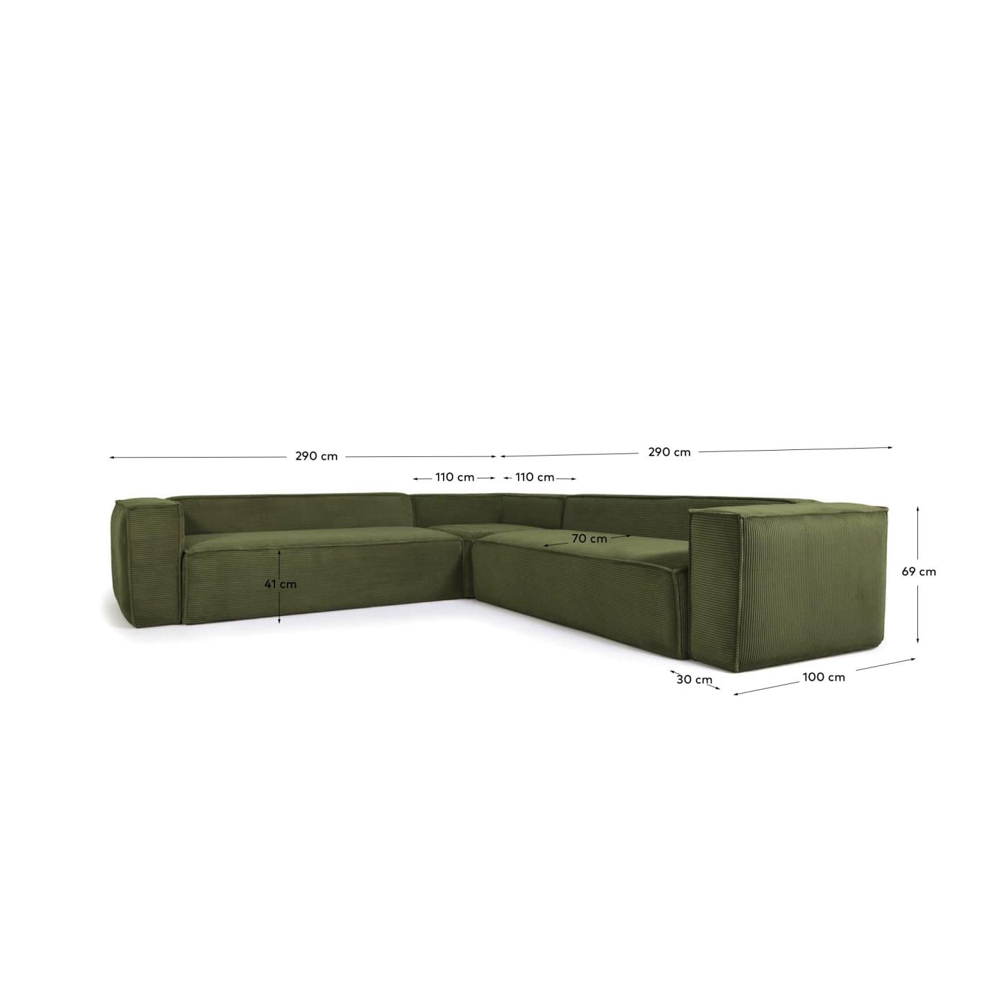 Symmetrischer Ecke 4-Personen-grüner Cordblock