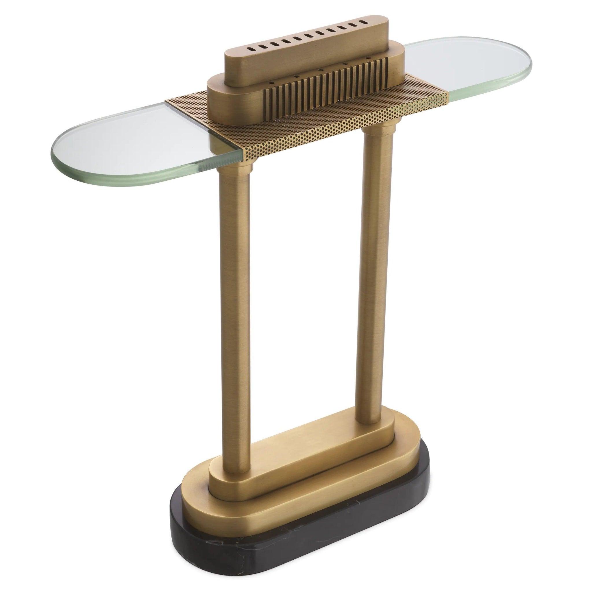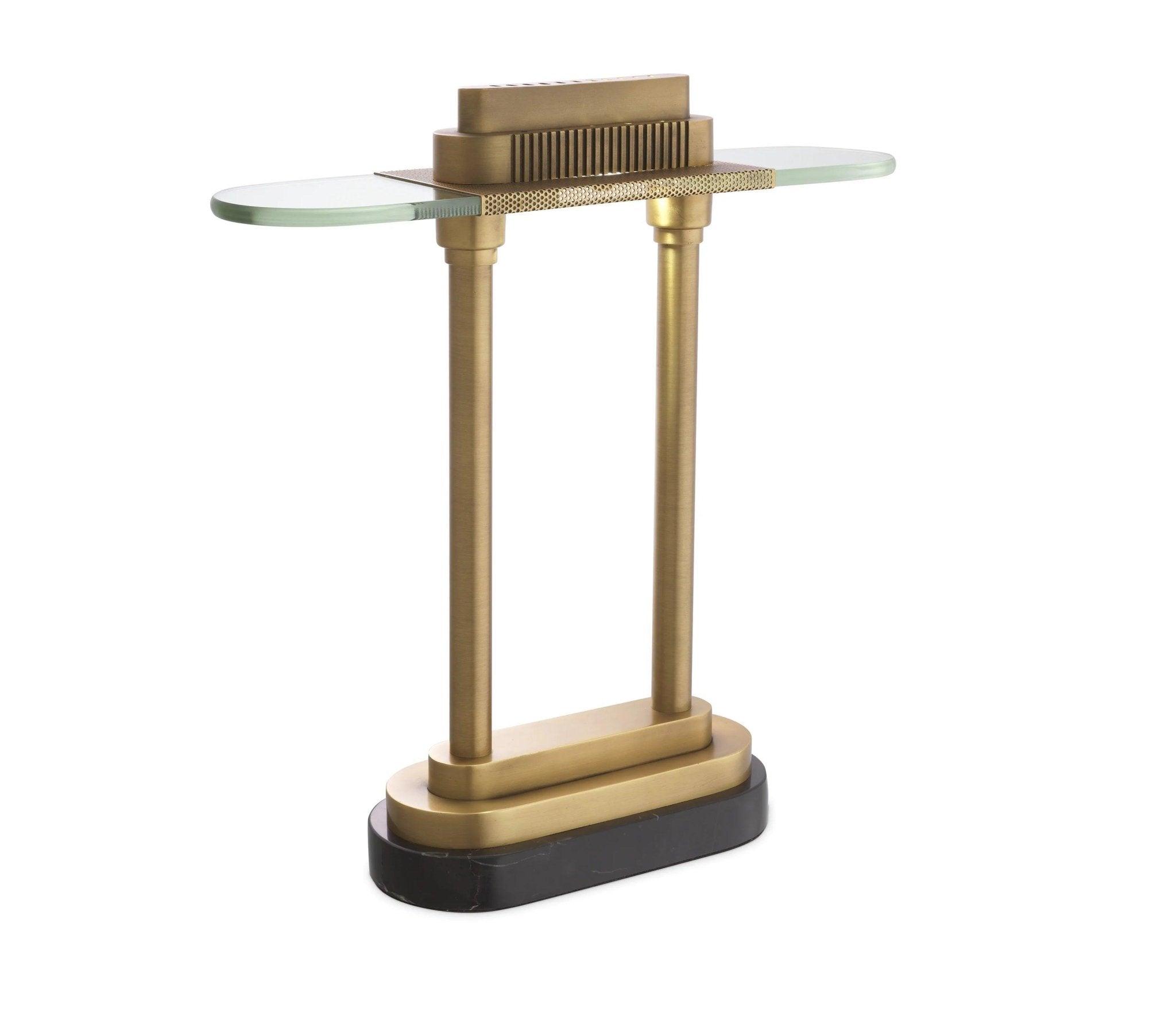 Bankier -Schreibtischlampe Bolongo ist nicht nur eine Lichtquelle, sondern auch ein echtes Kunstwerk, das Sie in die Atmosphäre der vergangenen Epochen bringt. Ihr antikes Messing Finish verleiht ihren einzigartigen Charakter, der mit Luxus und Subtilität ausgeht. Der transparente Glaslampenschirm leitet das Licht perfekt und erzeugt eine extrem angenehme Atmosphäre. Die Bolongo -Lichtleuchte ist auf eine schwarze Marmorbasis eingebettet, die ihm Solidität und Prestige verleiht. Das Messinglampe Es beleuchtet nicht nur, sondern dekoriert auch den Raum und verleiht ihm einen einzigartigen Charakter. Durch den Art -Deco -Stil in jedem Detail wird diese Lampe zu einem integralen Bestandteil der Innenvereinbarung und verleiht ihm einen einzigartigen Charme.