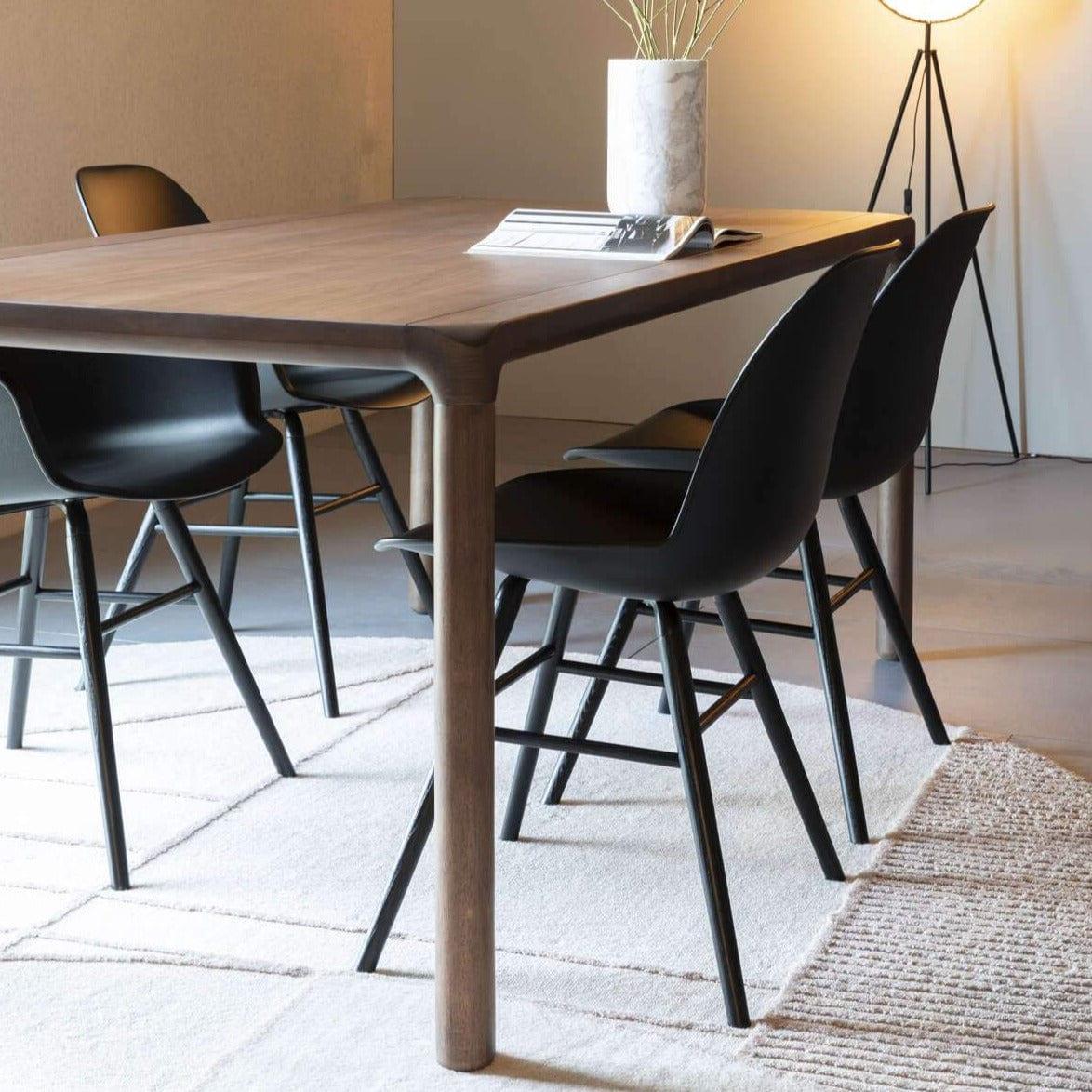 Das ganze Projekt Es hat einen extrem universellen Charakter, der zahlreiche Anordnungsmöglichkeiten bietet, und dank des schwarzen Finish funktioniert es hervorragend für das Innenraum skandinavisch, Jahrgang, Ob modern. Wird funktionieren perfekt als Esszimmerstuhloder Büros.