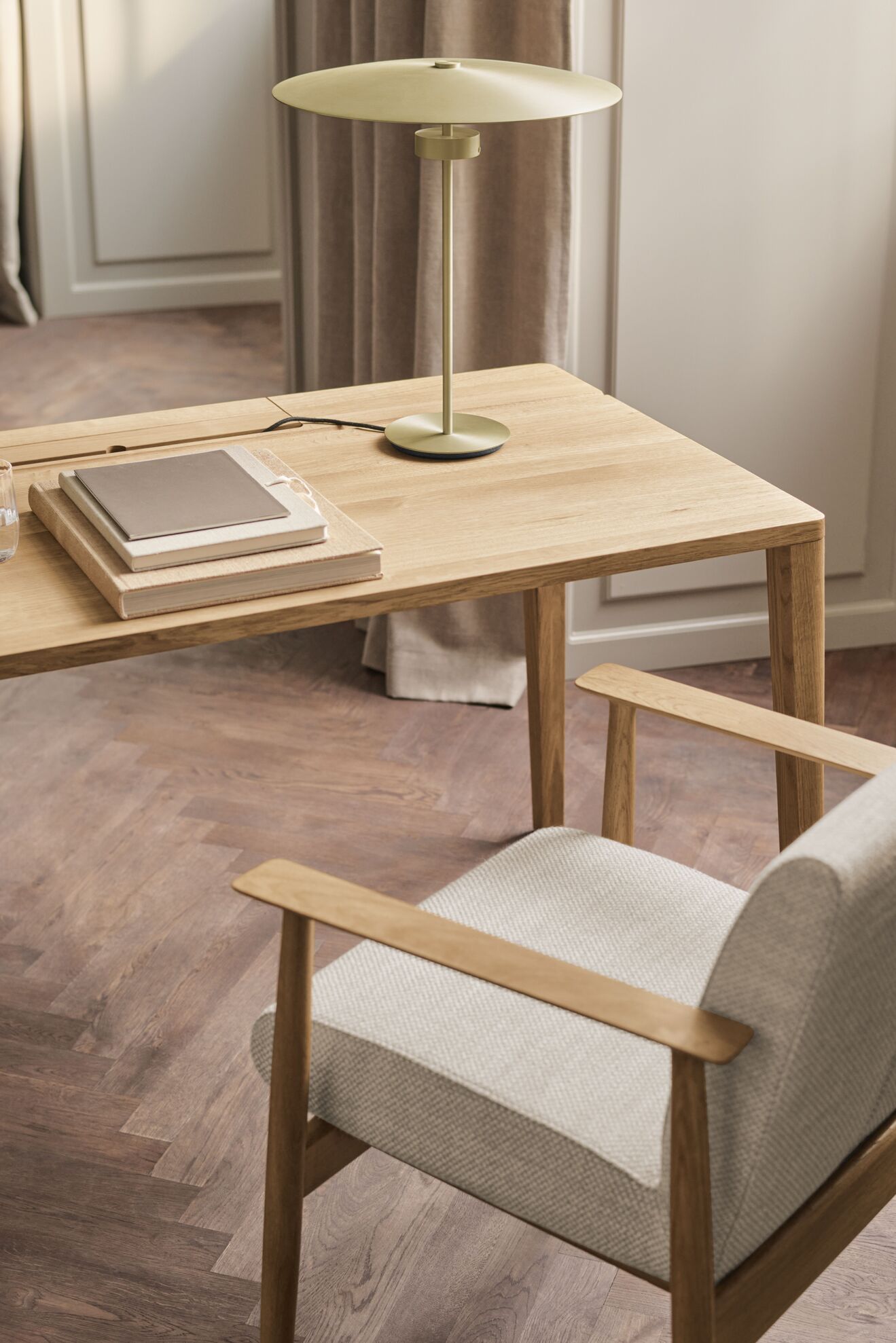 Tischlampe Reflexion ist ein gutes Beispiel für Einfachheit, Eleganz und zeitloses Design. Es wurde aus der Idee erstellt, die Grundelemente zu betonen Lampen - Licht- und Lampenschirmquellen - durch ihre subtile Trennung. Das Projekt von Asger Risborg Jakobsen führt ein einzigartiges Reflexionsspiel zwischen dem Lampenschirm und dem weichen Licht ein und erzeugt ein Projekt, das sowohl ästhetisch als auch funktional ist. Lampe Der Tisch verläuft perfekt in verschiedenen Innenräumen und verleiht ihnen Raffinesse und Harmonie.