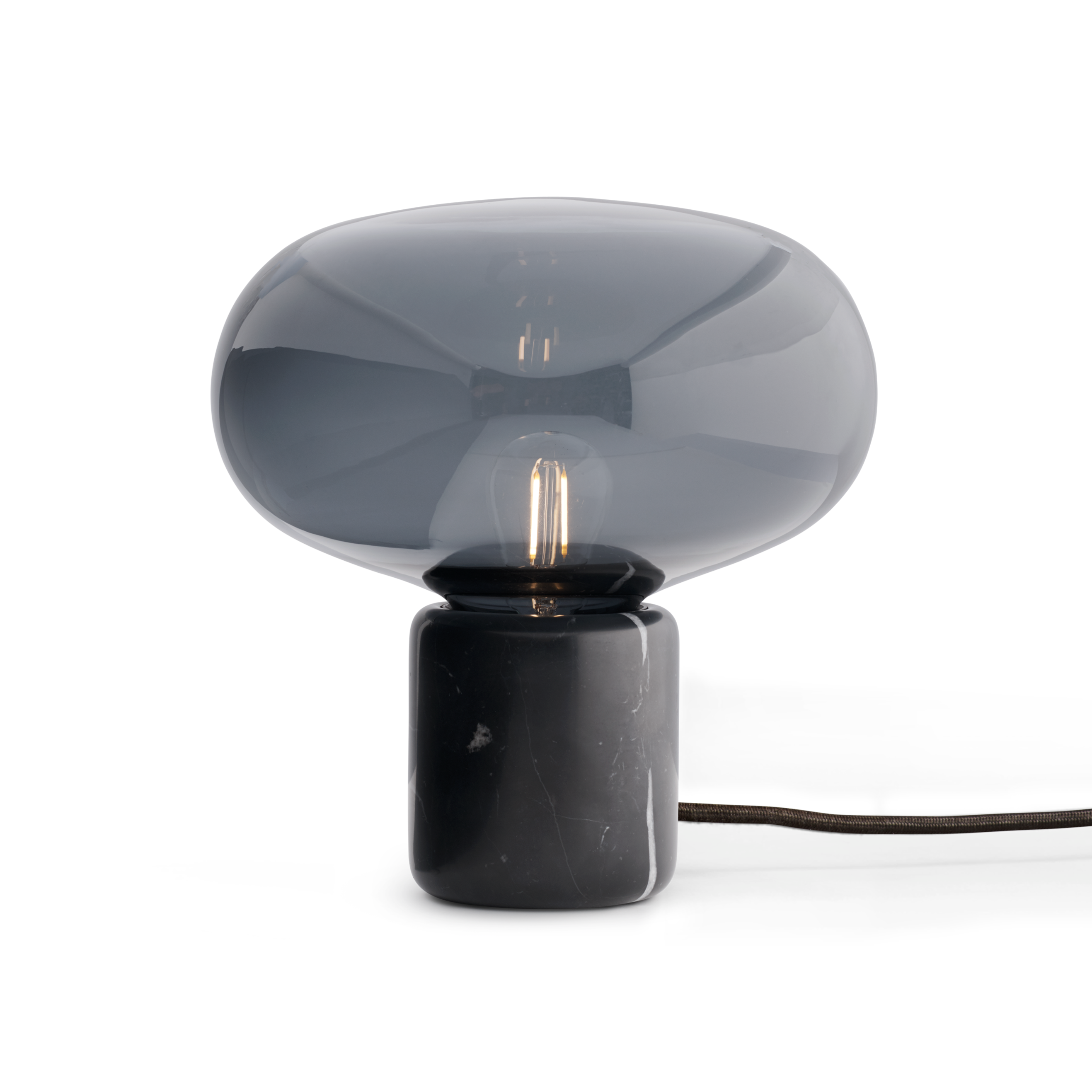 Karl-Johan Tischlampe geräuchertes Glas mit einer schwarzen Marmorbasis