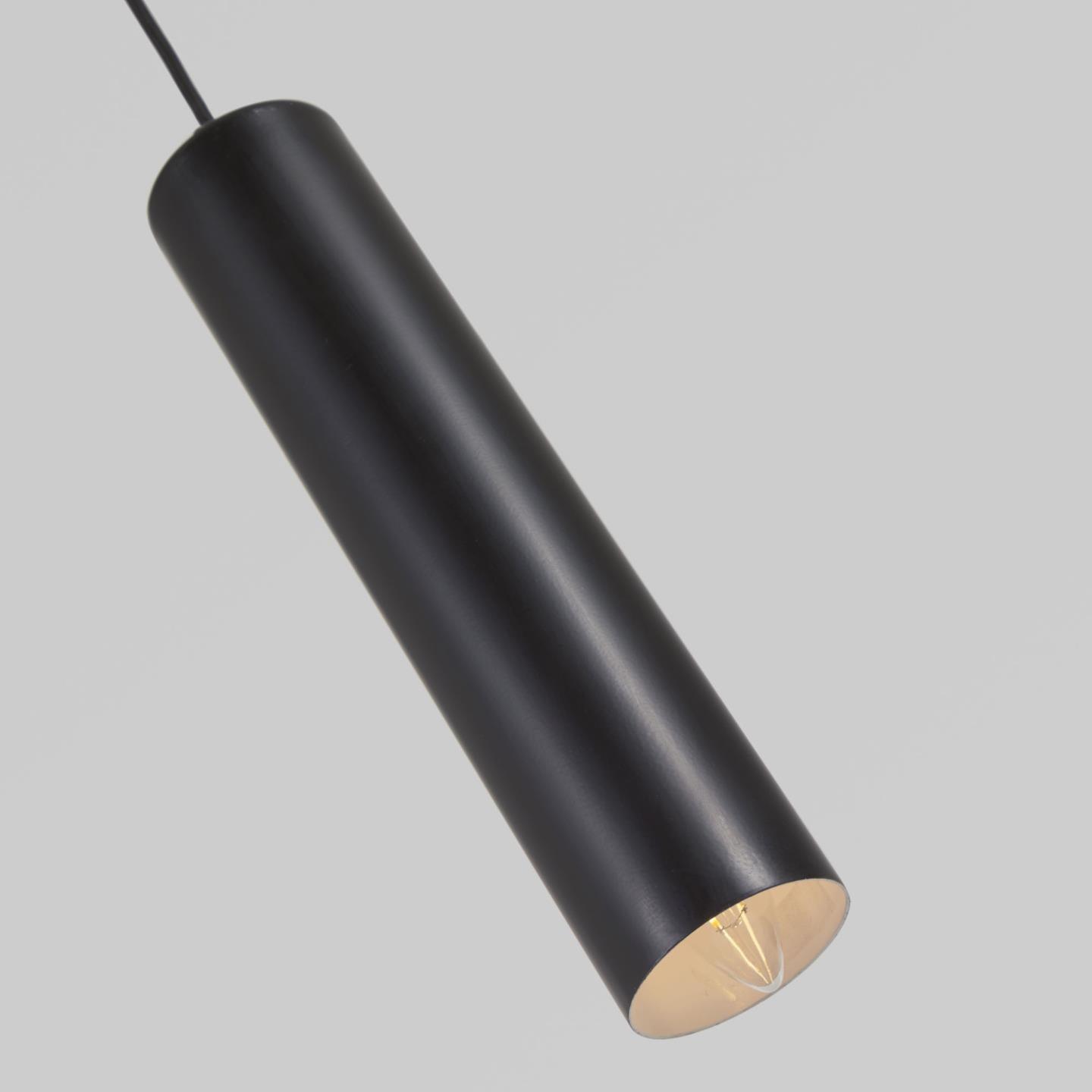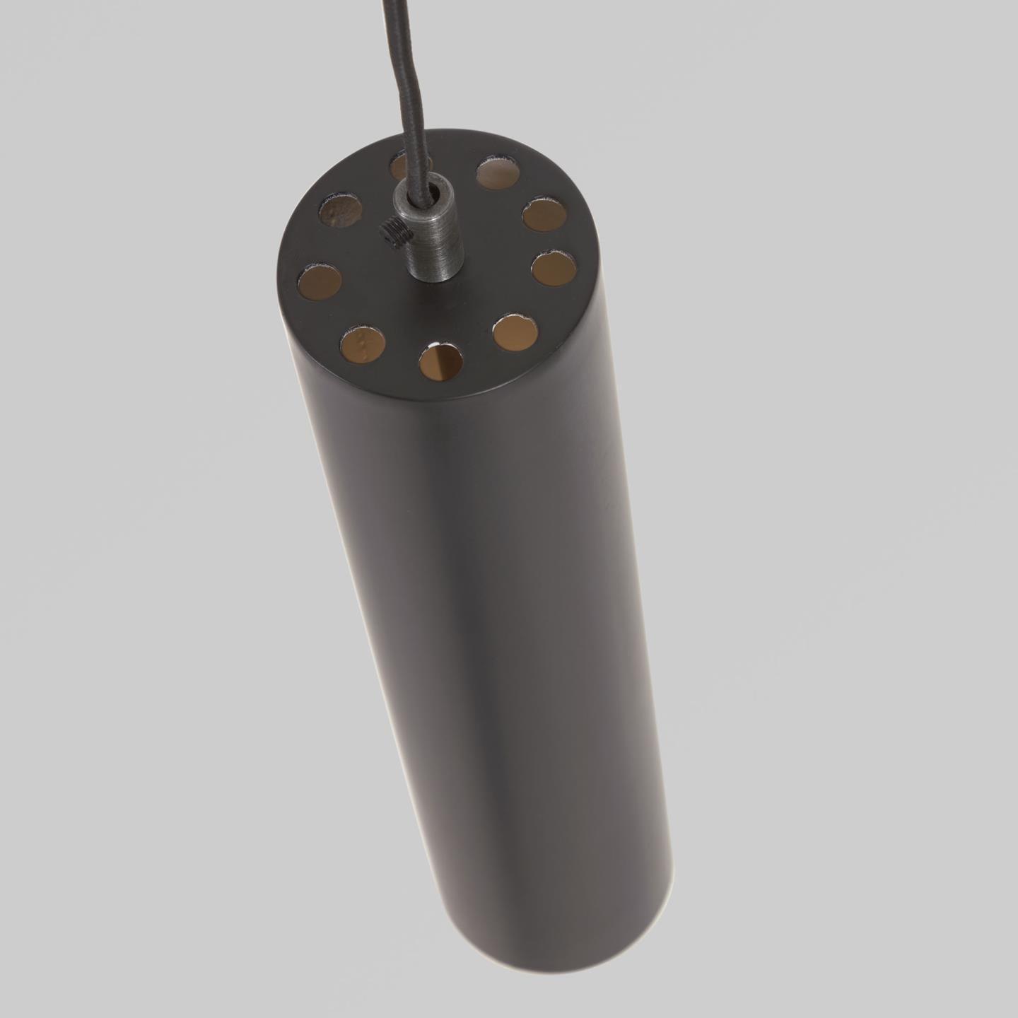 Die Maude -Lampe hat einen zylindrischen Farbton aus zarten Linien und bemalten Metall. Die Glühbirne befindet sich im Lampenschirm, ist aber vor Sehvermögen versteckt. Dieses Element ist geeignet, um den Raum im industriellen und minimalistischen Stil zu beleuchten.