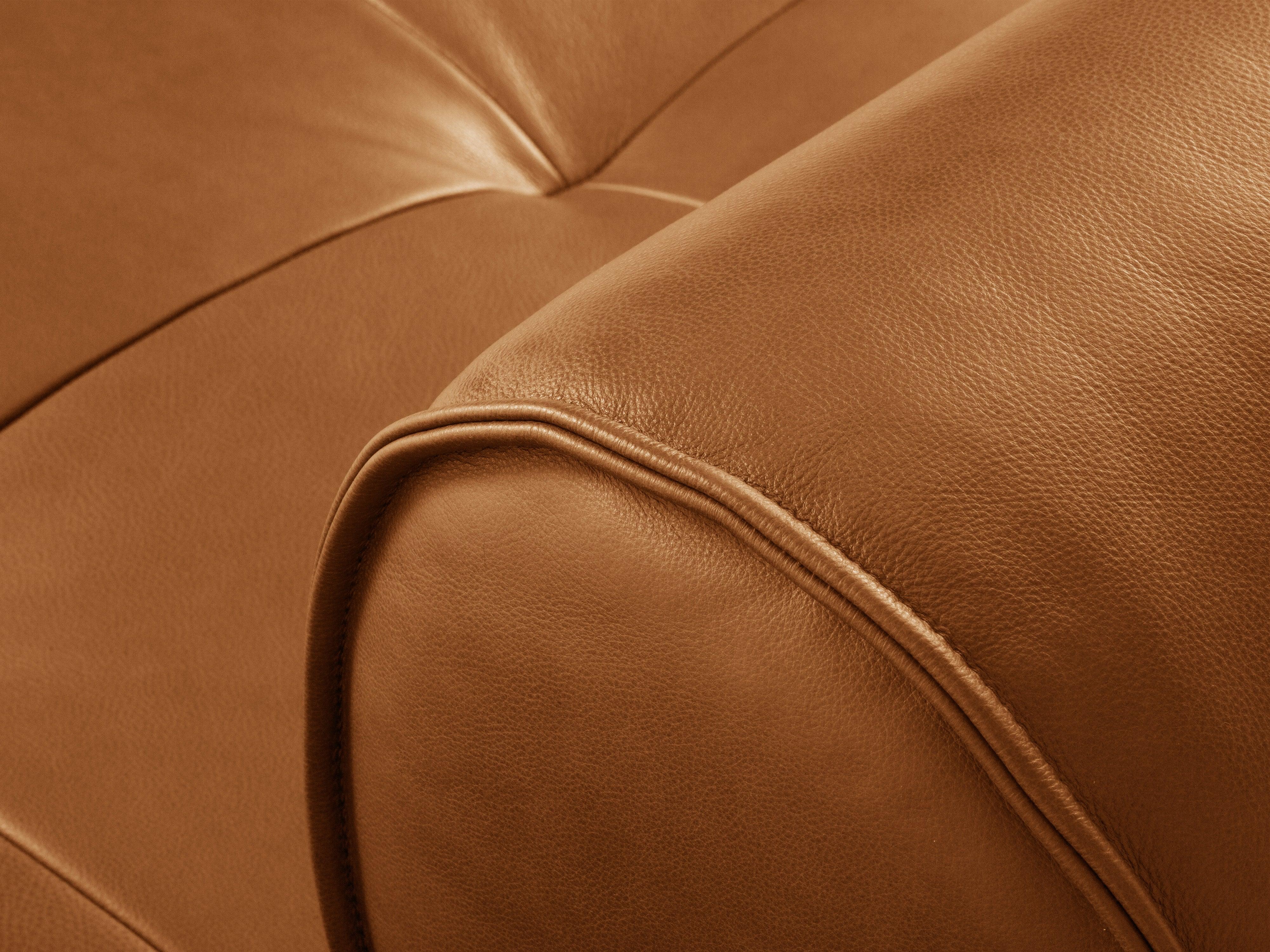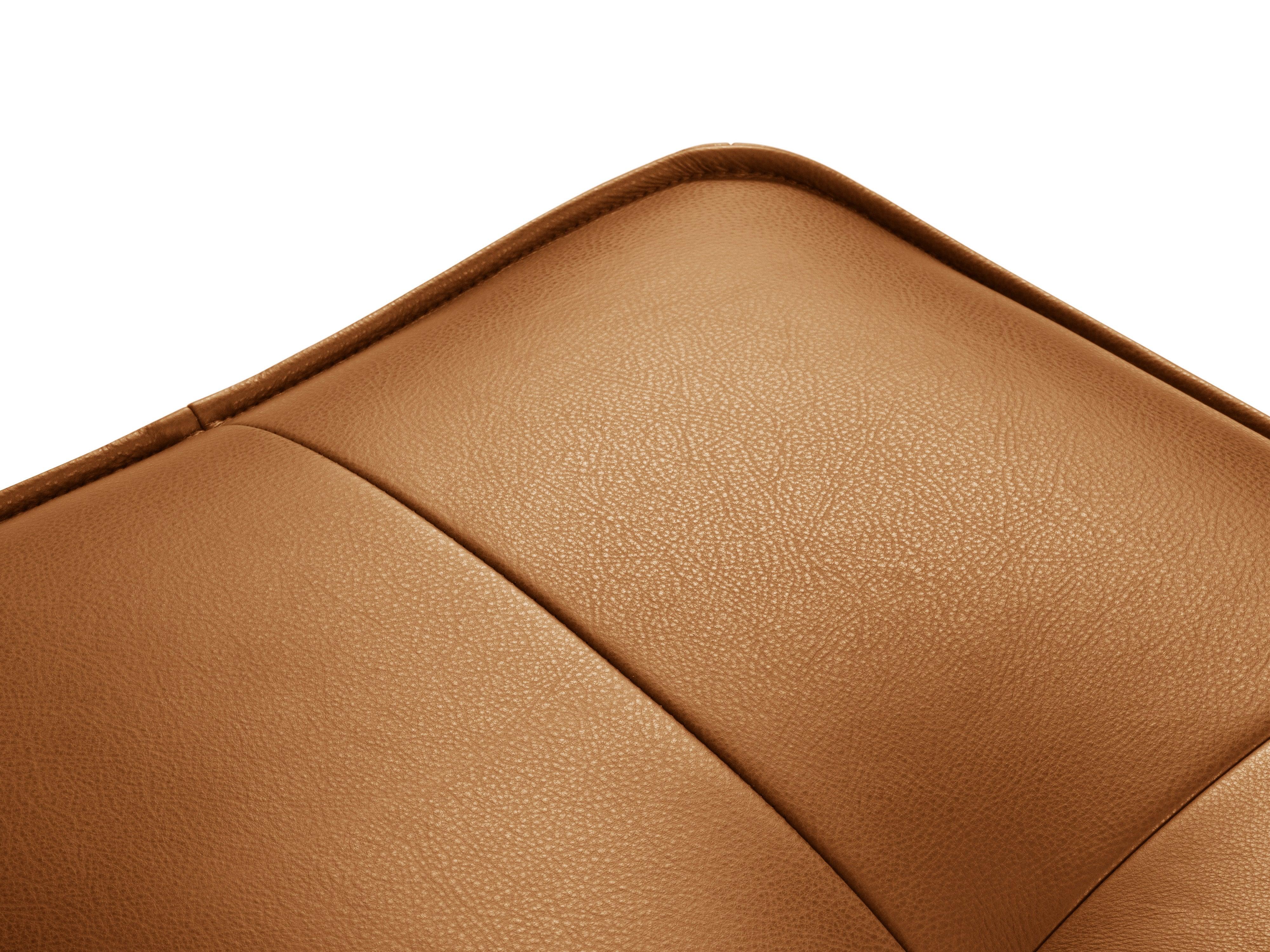 Natürliches Kuhleder mit mattem Gesicht mit der Struktur von Orangenschale, 100% natürlich. Die oberste Schicht wird vorsichtig gepresst, dank seiner empfindlichen Struktur, und die natürlichen Merkmale sind auf der Oberfläche sichtbar. Dicke ca. 1,5 mm. Dank des empfindlichen Abschlussprozesses ist es sehr angenehm, es zu berühren, es knackt nicht und schichtet nicht. Jede Schicht natürlicher Leder kann sich in Aussehen und Struktur unterscheiden. Dank dessen werden die Möbel einzigartig. Das Polsterleder kann schrumpfen und ausdehnen. Ihre Polsterhaut passt sich auch an Umweltbedingungen an.