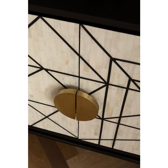 Körper: Faserplatte mit mittlerer Dichte (MDF), lackiert. Vorderseite: Buffalo Corner Bone, teilweise von Hand gemacht. Beine/Basis: Pulver bemalte Stahl. Regal: Maximale Last 15 kg. Lieferung in Teilen.