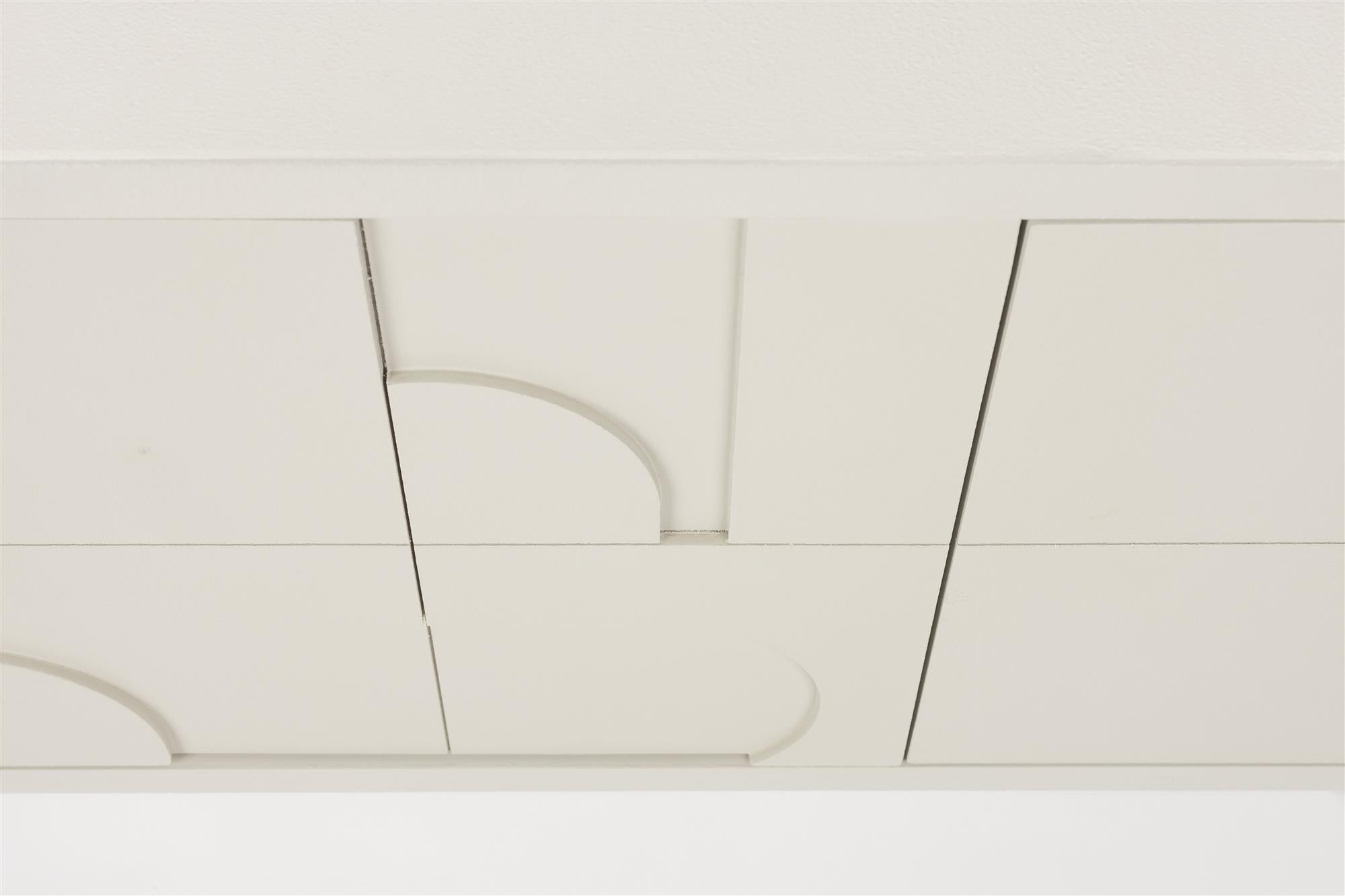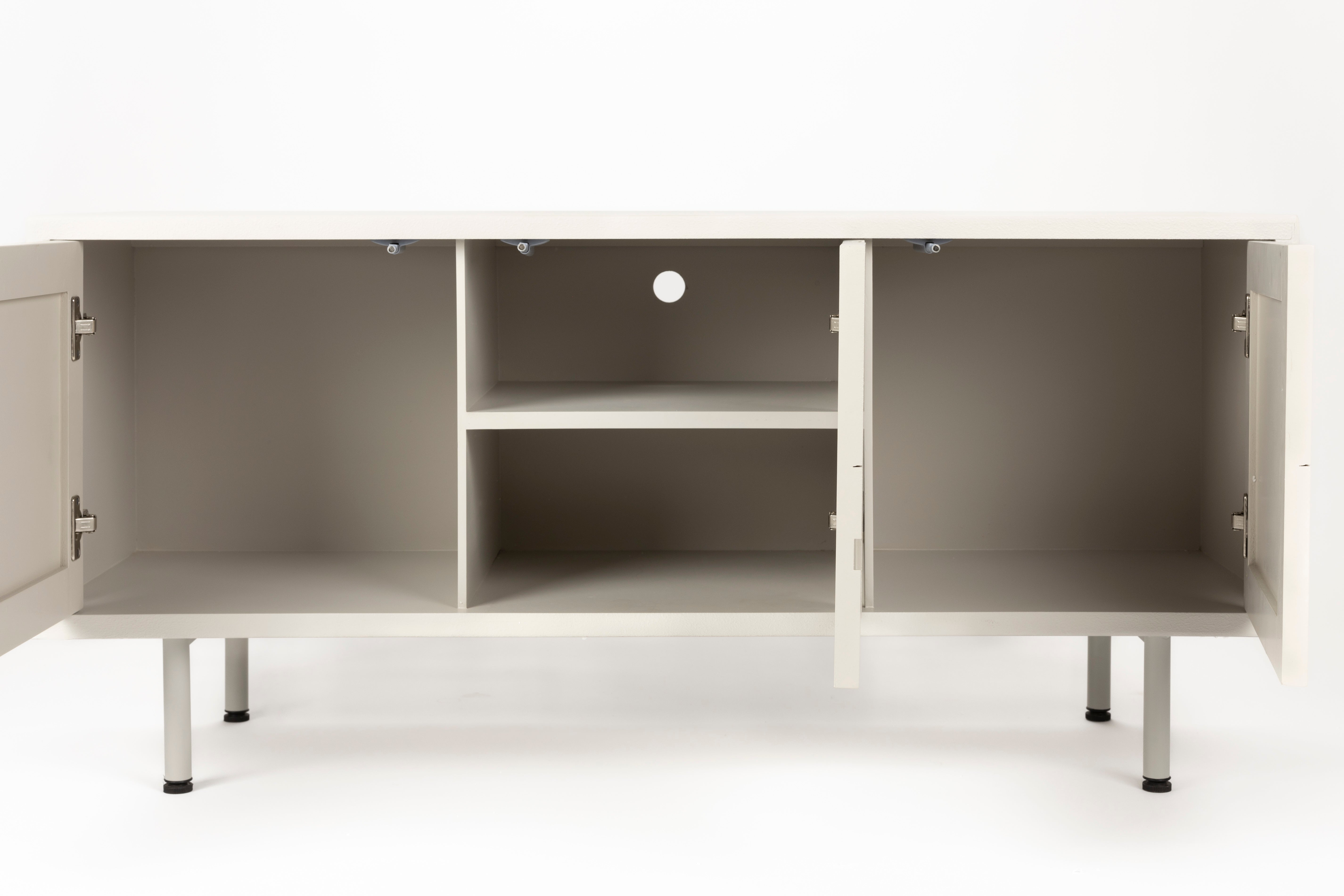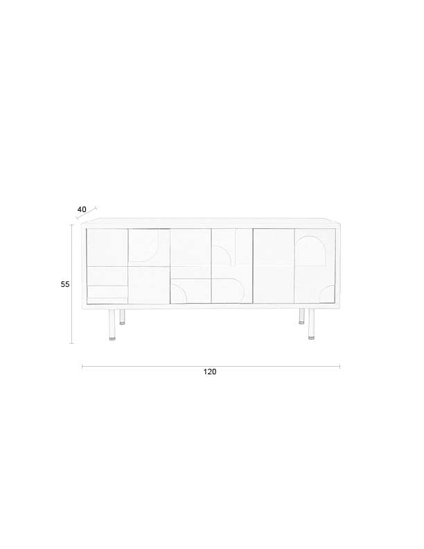 Elegante Kommode Funk in cremiger Farbe ist die ideale Lösung für Menschen, die modernes Design und Funktionalität schätzen. Geometrische Fräsungen an den Fronten verleihen ihr einen originellen Charakter und schaffen einen 3D-Effekt, der die Blicke auf sich zieht und den Raum belebt. Schlanke Metallbeine verleihen der gesamten Konstruktion Leichtigkeit und sorgen gleichzeitig für Stabilität. Die Kommode ist perfekt für das Wohnzimmer, das Schlafzimmer oder das Esszimmer geeignet und bietet einen bequemen Platz zum Verstauen.