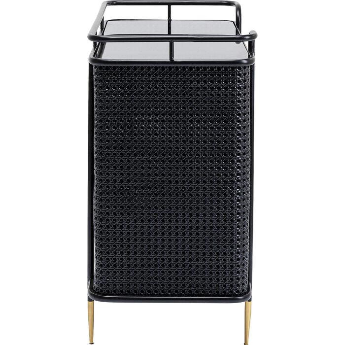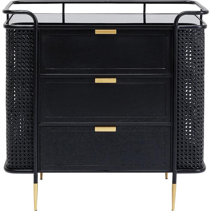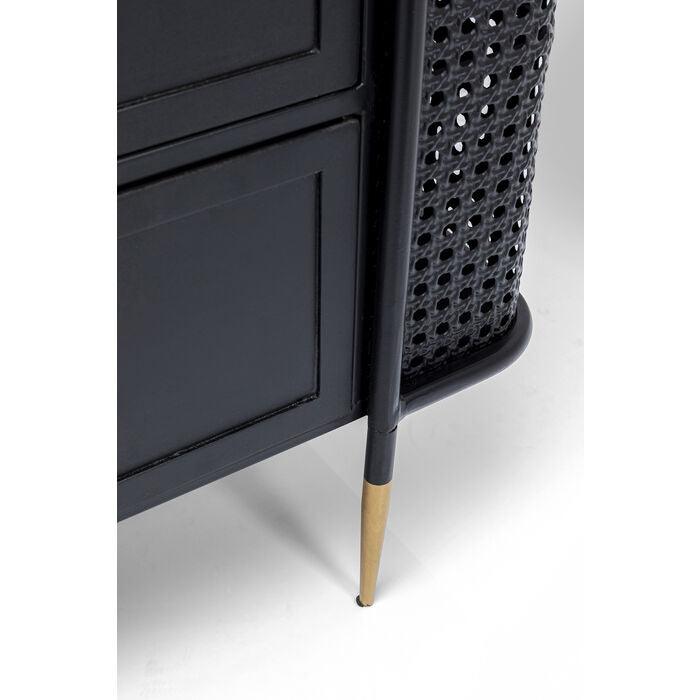 Das Design der Zaunkollektion ist dank der milden Beine und Rahmen, die mit einem Geländer enden, auch unvergesslich, ähnlich dem Handlauf um das Schiffsdeck. Um alles zu ergänzen, geben Griffe und Beine mit Messing Finish einen eleganten Retro -Charakter. Die Kollektion umfasst einen Beistelltisch, einen Couchtisch, eine Konsole, einen niedrigen Tisch, eine Kommode, einen Schrank, einen Schreibtisch und ein Sideboard.