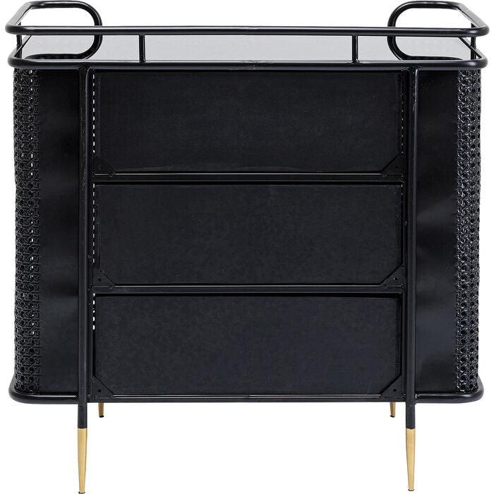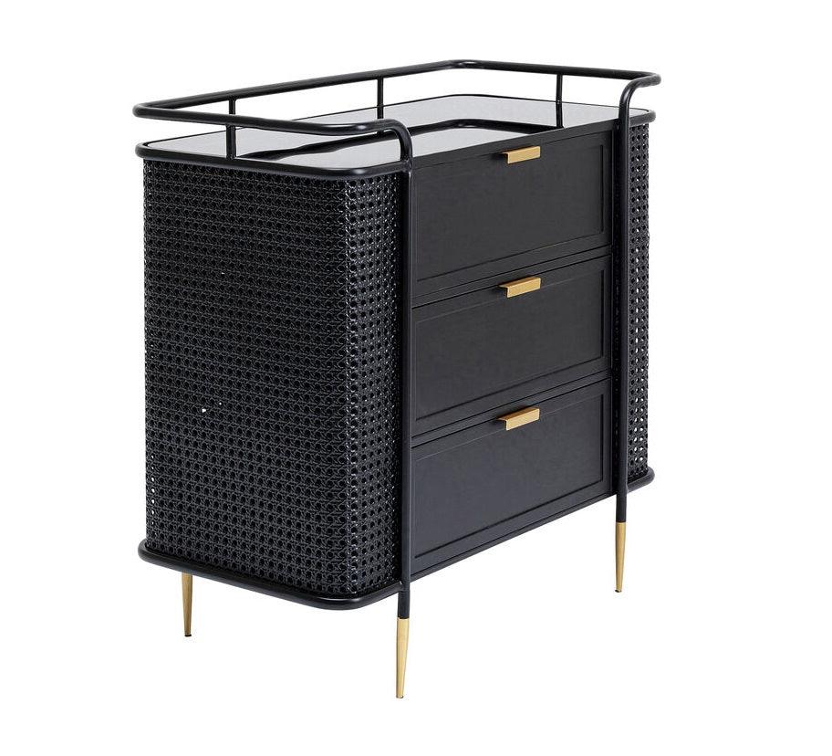 Kabinett Zaun erweitert die stilistischen Welten von Stahlmöbeln. Dies ist kein traditionell hartes industrielles Aussehen, aber die moderne Eleganz lässt diese Möbellinie von den anderen abheben. Das Überraschungselement wird durch drei neue Zutaten für Workshop -Möbel bereitgestellt. Ein Wiener Netz erscheint an den Fronten. Glatte Oberflächen aus lackiertem Stahl und Glas sind mit Abschnitten mit Weidenaussehen verflochten, die ebenfalls aus Stahl bestehen.