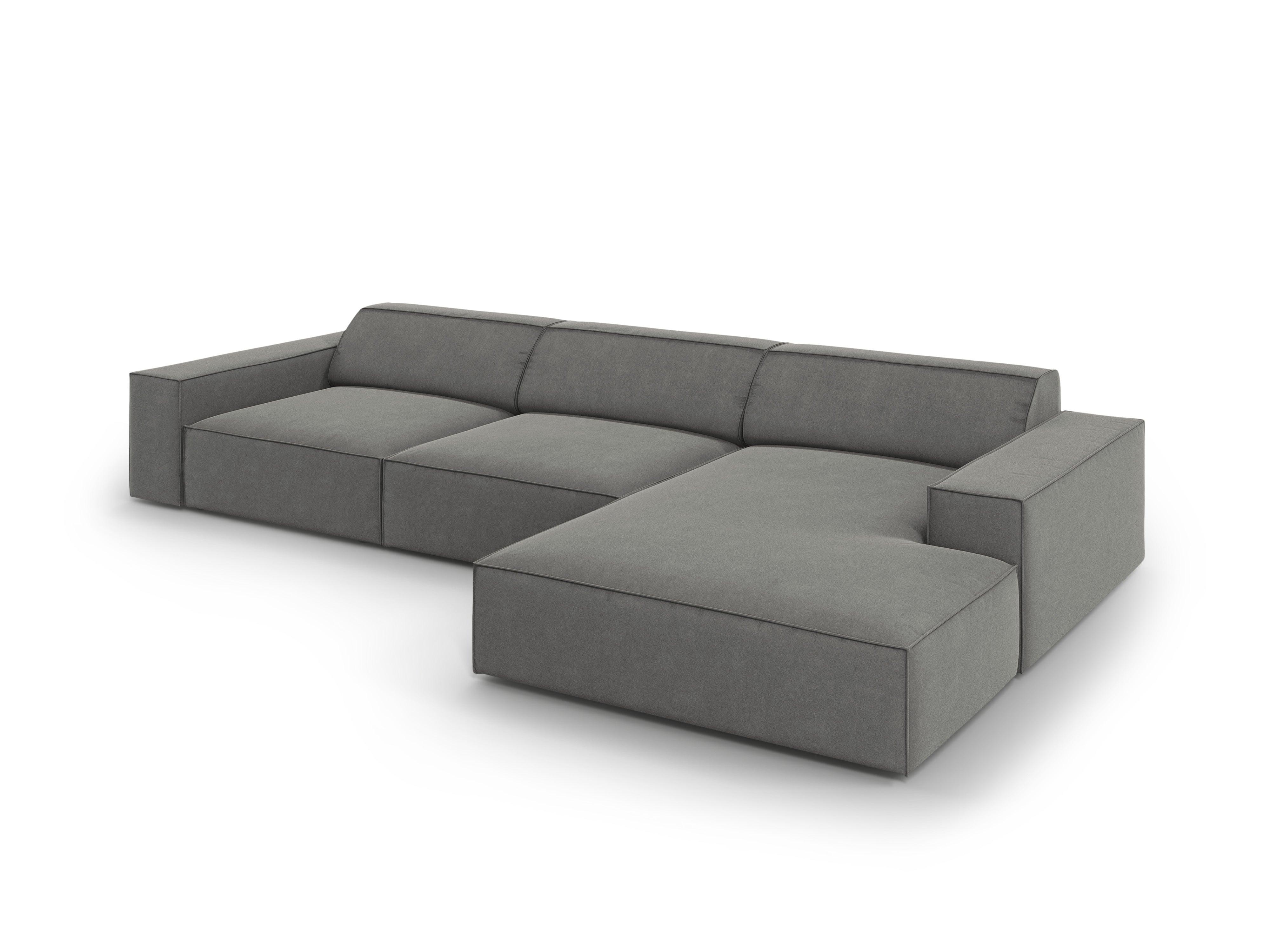 Der Sofa -Sitz besteht aus Samtstoff, was nicht nur die Bequemlichkeit, sondern auch die Haltbarkeit und den Widerstand gegen Schäden garantiert. Jodie Sofa ist ebenfalls sehr praktisch - es kann je nach Bedarf mit der Option links oder rechts bestellt werden.
