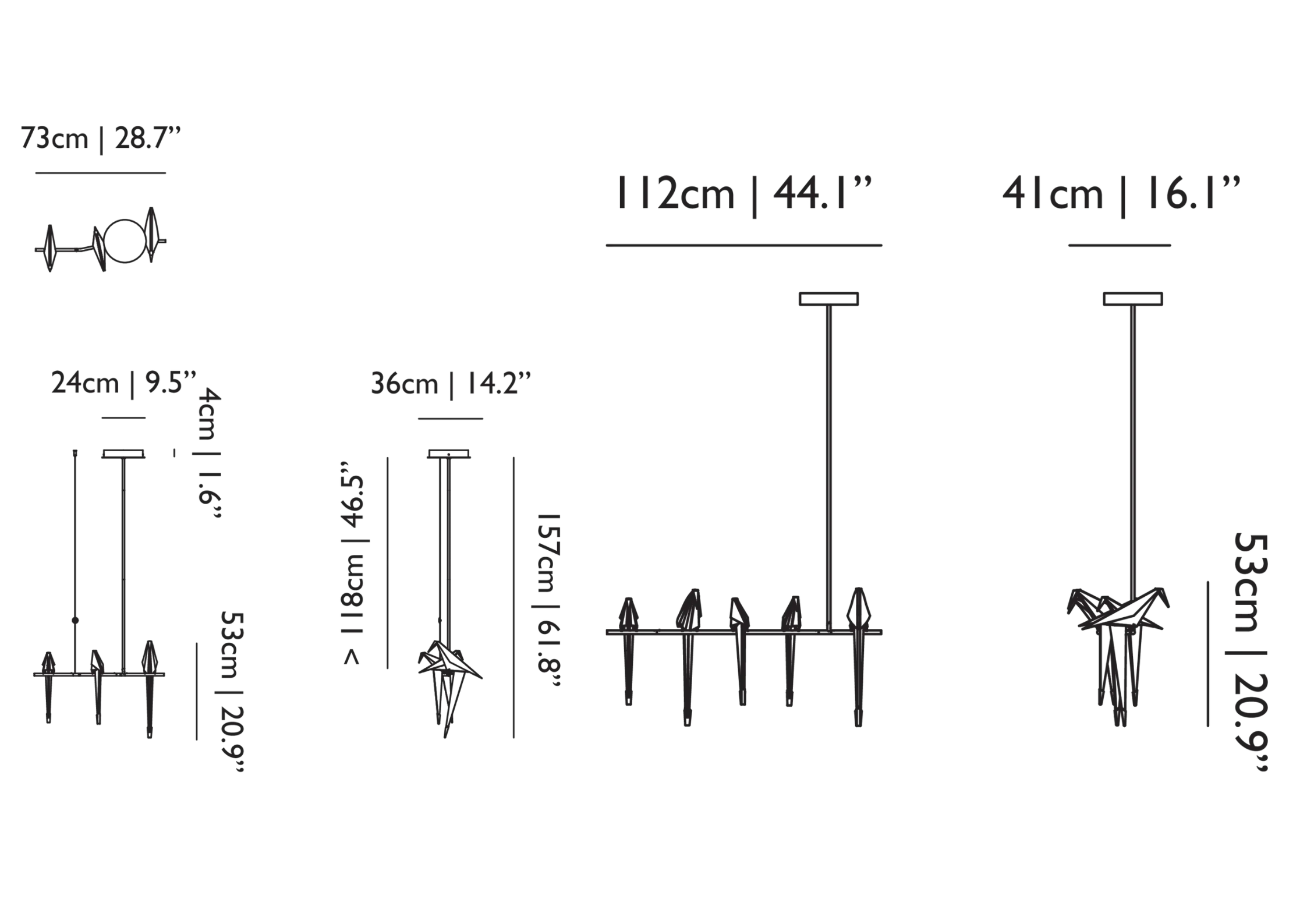 Lampe hängen Barch Light Ast ist eine poetische und elegante Komposition, die sich an das Bild von Vögeln erinnert, die auf Zweigen sitzen und das Leben flirten, singen und feiern. Diese faszinierende Sicht der Natur veranlasst uns, für einen Moment anzuhalten und ihre Schönheit zu bewundern. Barsch Light Branch erhältlich in zwei Modellen bietet sanft schwankende Vögel, die auf eine subtile Berührung reagieren. Diese Papiervögel, die in Sonnenlicht gebadet waren, leuchten sanft und tragen das Versprechen des Frühlings.