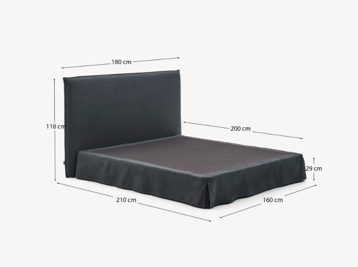 Bettbasis Jaira ist die perfekte Lösung für Menschen, die Komfort und Eleganz in ihrem Schlafzimmer kombinieren möchten. Entwickelt, um maximale Bequemlichkeit zu gewährleisten, Base Es hat eine abnehmbare Matratze mit Abmessungen von 180 x 200 cm. Die Abdeckung besteht aus natürlichen Baumwoll- und Leinenfasern, und sein sanformiertes Finish verleiht ihm außergewöhnliche Weichheit und Haltbarkeit.