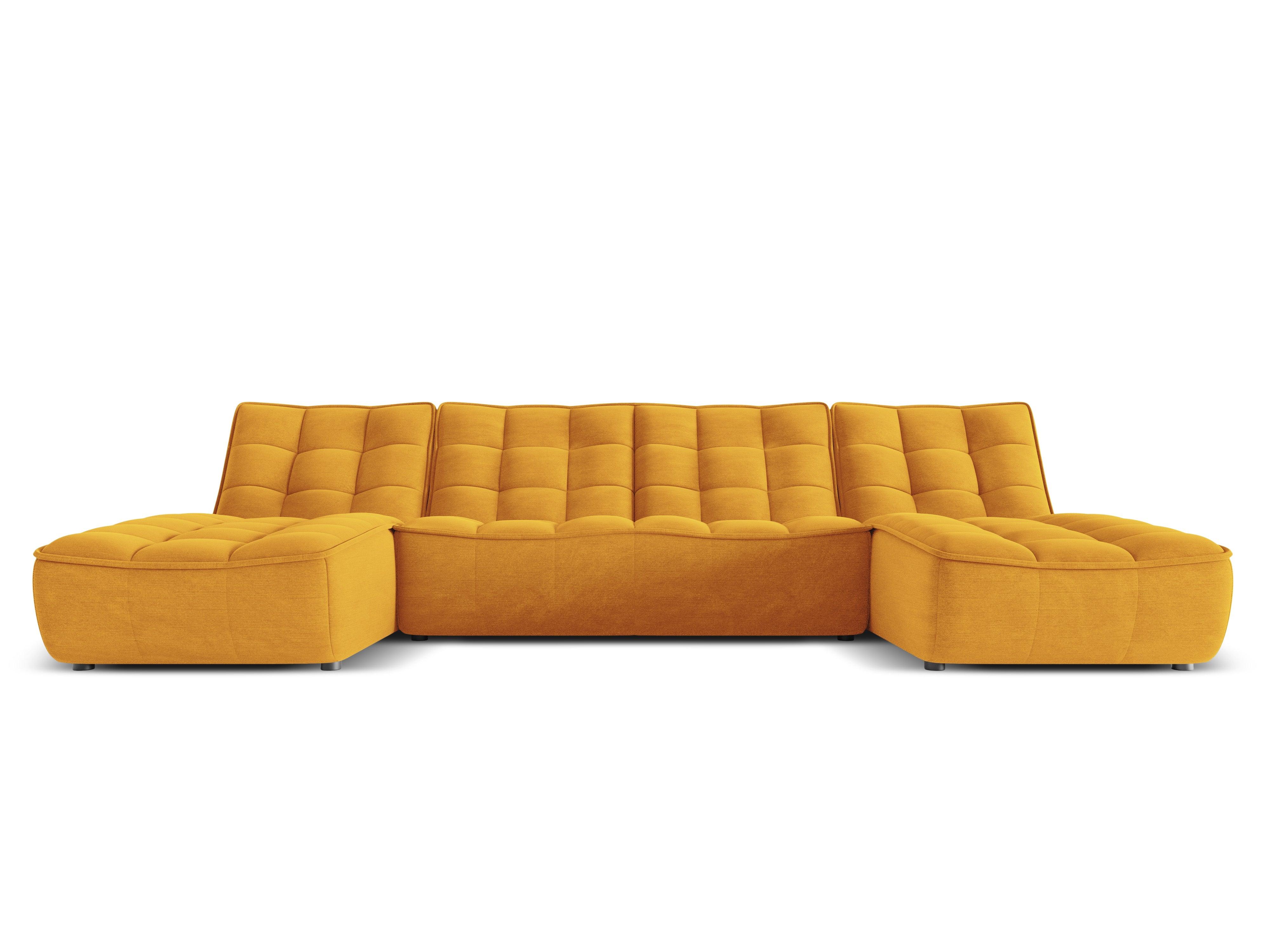 Polsterung aus strukturellem Stoff, dessen fein gewebte Struktur Samt mit einer heterogenen Oberfläche ähnelt, ist angenehm und extrem langlebig. Ergonomische Formen gewährleisten kostenlose Unterstützung. Die Moni -Kollektion umfasst mehrere Kombinationen von Sofas und Ecken sowie Elemente wie Chaise und Poufs.