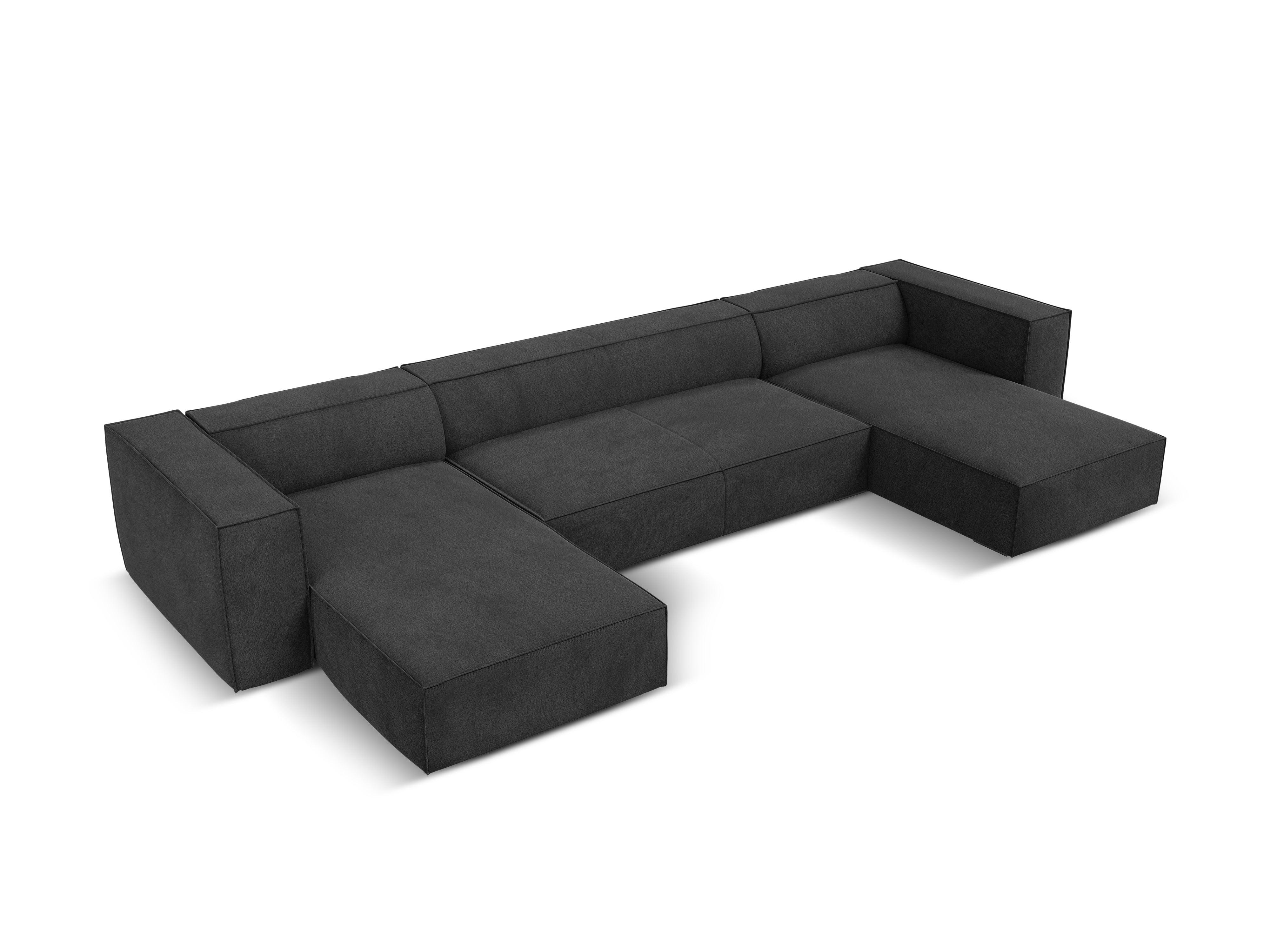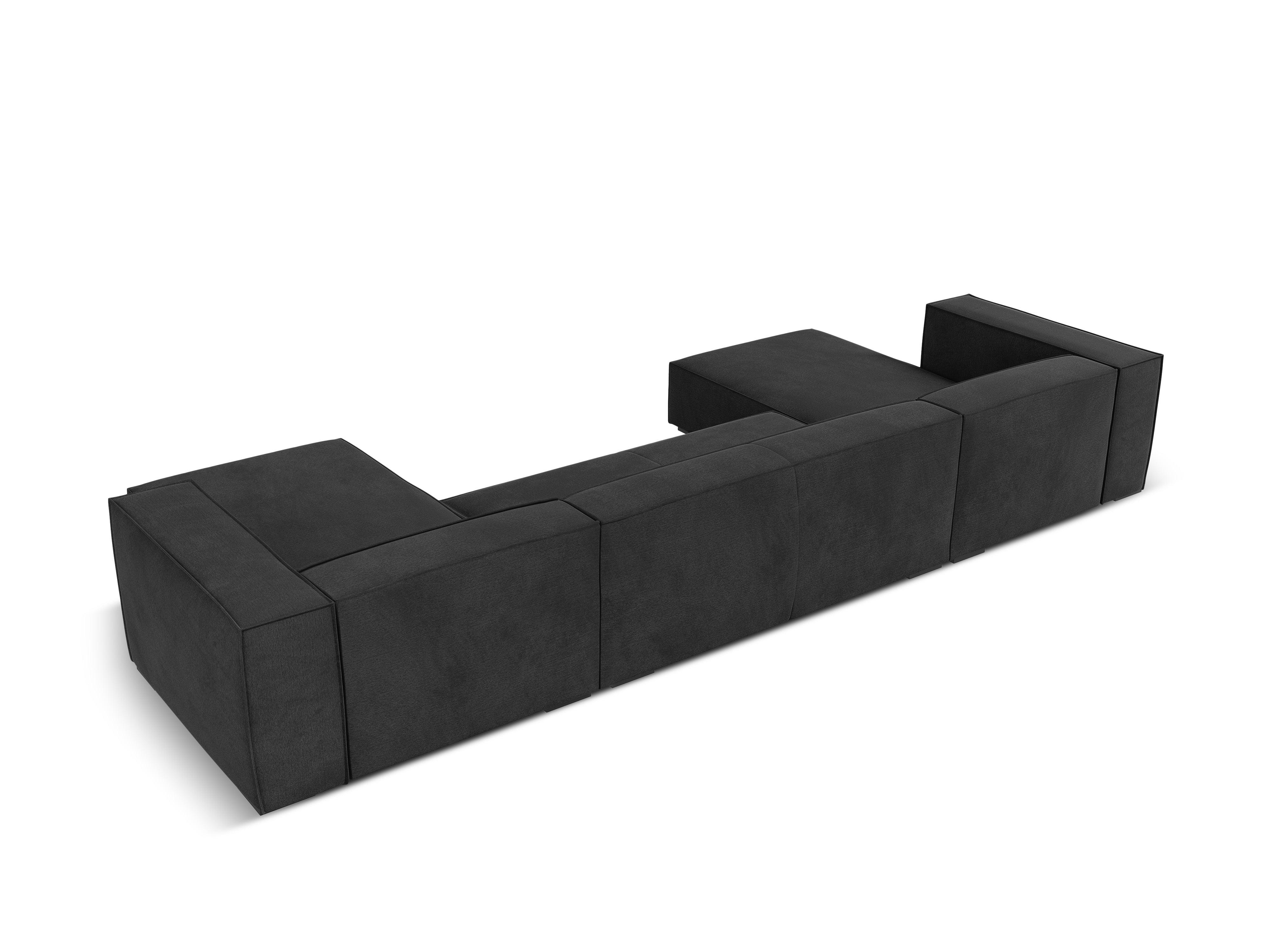 Eine Ecke für sechs Personen Madame mit einem ausgeprägten Charakter und einem eleganten Finish ist eine gute Wahl für ein modernes Wohnzimmer. Der tiefe Sitz eignet sich sowohl für soziale Versammlungen als auch bis zu einem Moment der Entspannung nach einem harten Tag. Sie können bequem in freien Positionen ruhen. Mit einer niedrigen Figur, breiten Armlehnen und Rücken erzeugt es einen gemütlichen Block.