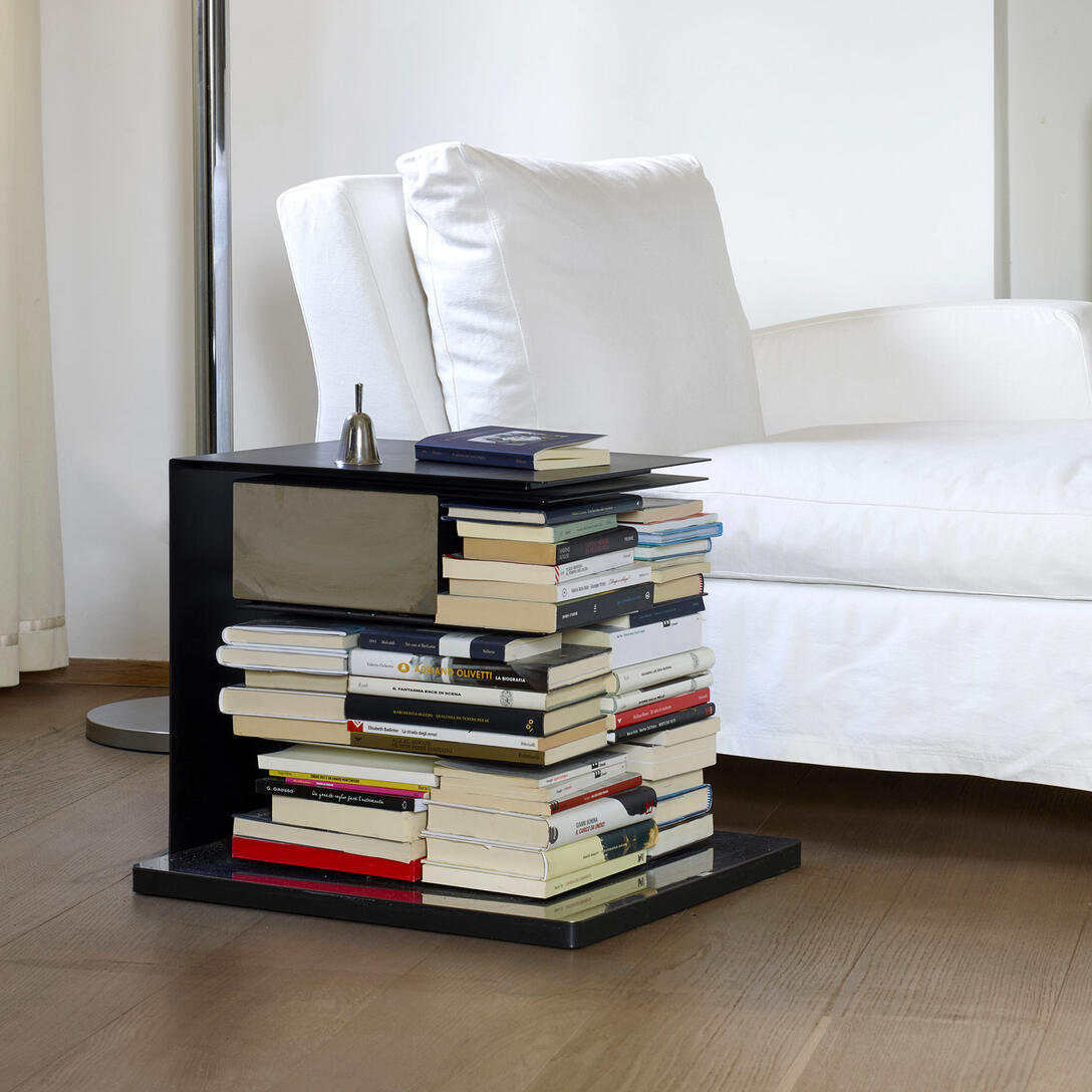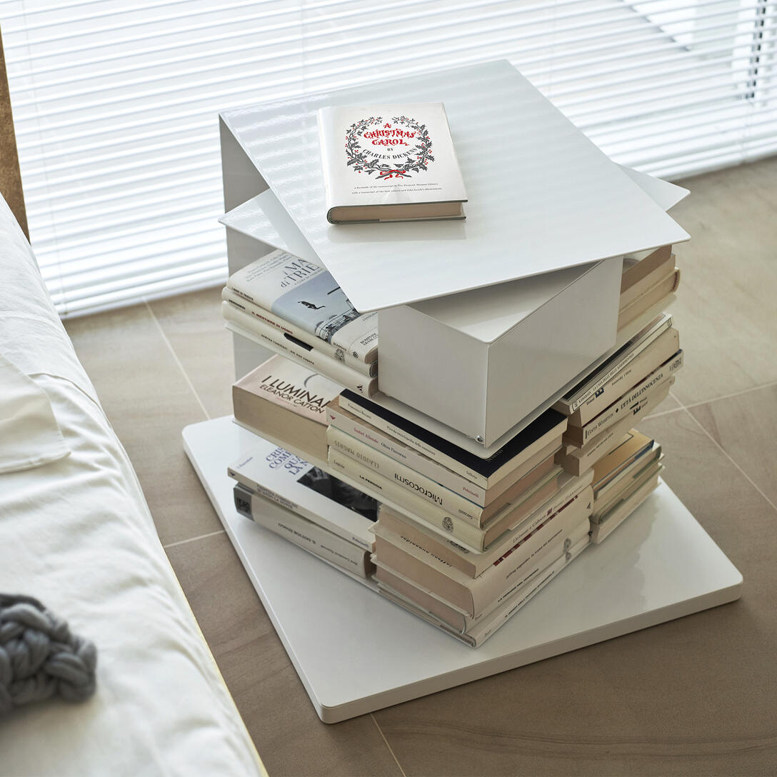 Stolik Ptolomeo x 4 ist ein äußerst praktisches Möbelstück, das die Funktionen eines Beistelltisches, Nachttisches und modernen Regals vereint. Ausgestattet mit drei um 360° drehbaren Regalen und einem abschließbaren Fach für Kleinigkeiten, eignet es sich sowohl neben dem Bett als auch im Wohnzimmer oder im Büro. Die feste Basis und die Tischplatte sorgen für Stabilität, während die verstellbaren Füße eine perfekte Anpassung an jede Oberfläche ermöglichen.