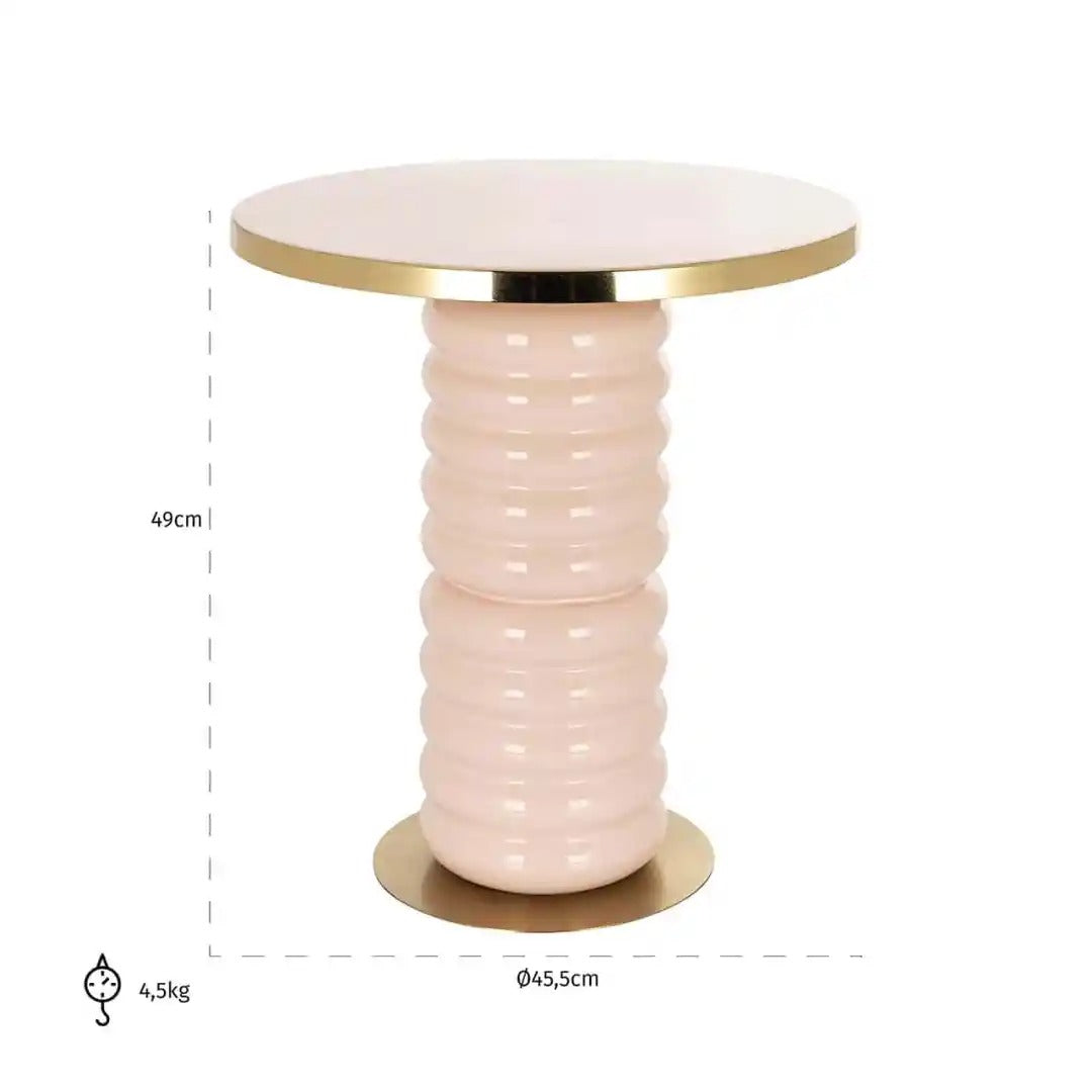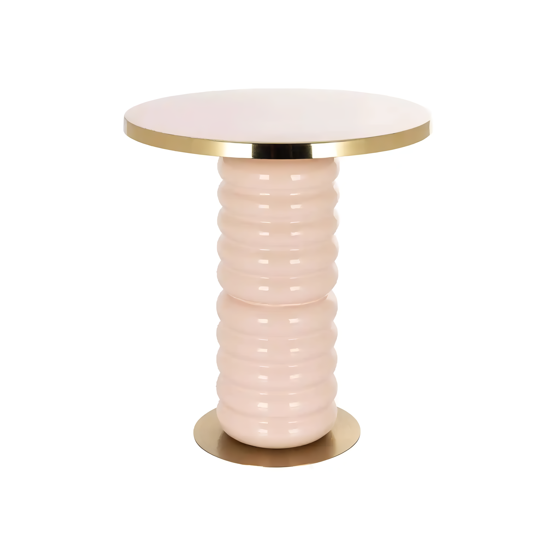 Moderner Tisch Bonsai mit außergewöhnlicher Form und subtiler Glanz ist die ideale Ergänzung für glamouröse und moderne Innenräume. Die runde Tischplatte mit eleganter Oberfläche in Messingfarbe harmoniert perfekt mit dem Designerfuß in Form von zylindrischen, emaillierten Segmenten. Dieses originelle Möbelstück erfüllt nicht nur eine praktische Funktion, sondern hat auch eine dekorative Rolle, indem es einen Hauch von Luxus in den Raum bringt.