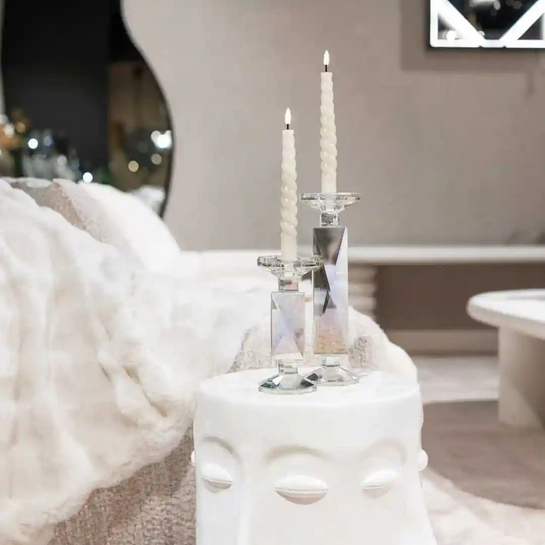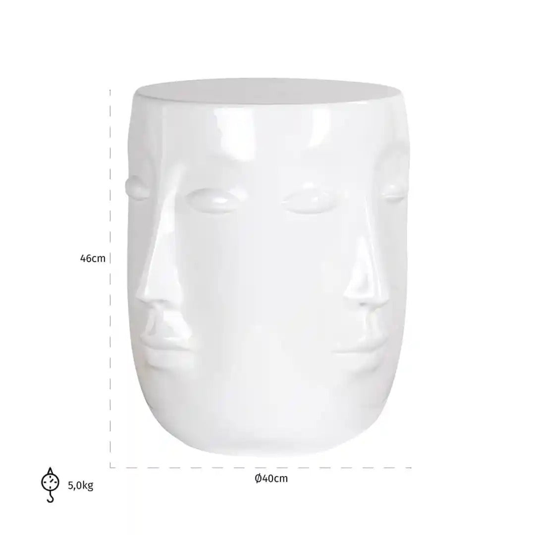 Moderner Tisch Christy in Form einer Skulptur mit Gesicht ist ein einzigartiges Dekorationselement, das Funktionalität mit künstlerischem Design verbindet. Seine minimalistische Form und das glänzende weiße Finish sorgen dafür, dass er sowohl in modernen als auch in eklektischen Arrangements hervorragend zur Geltung kommt. Er kann als Beistelltisch, Nachttisch oder Dekorationstisch sowie als originelles Podest für Pflanzen oder Dekorationen dienen.