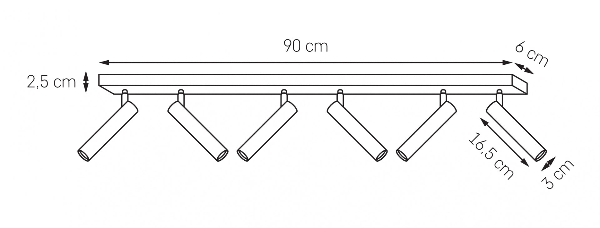 Dank der Leiste mit einer Länge von 90 cm und sechs beweglichen Röhren ermöglicht die Deckenlampe Roll 6 eine beliebige Ausrichtung des Lichts – auf dekorative Elemente, Möbel oder bestimmte Bereiche des Raumes. Dies ist eine hervorragende Lösung für die Küche, das Wohnzimmer, lange Flure, das Badezimmer sowie für gewerbliche Räume. Die geometrische Einfachheit des Designs sorgt dafür, dass die Lampe sowohl zu Loft- als auch zu skandinavischen oder industriellen Arrangements passt.