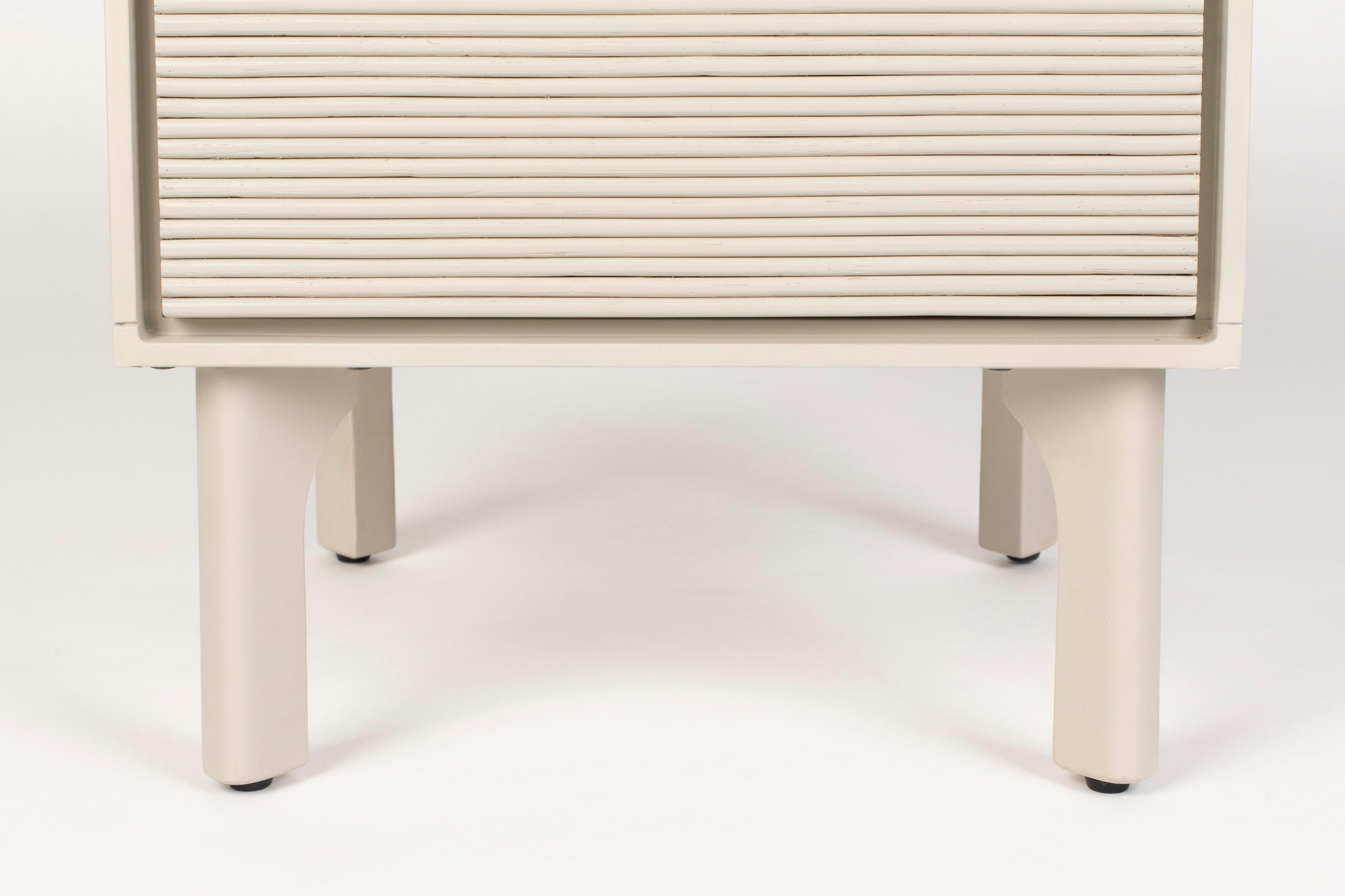 Das Schrank besteht aus einem natürlichen Holzrahmen und Rattan an den Fronten. Der Morgen hat zwei Türen und zwei Regale. Entdecken Sie die Serie in drei Größen: Truhe der Schubladen, Schrank und Nachttisch.