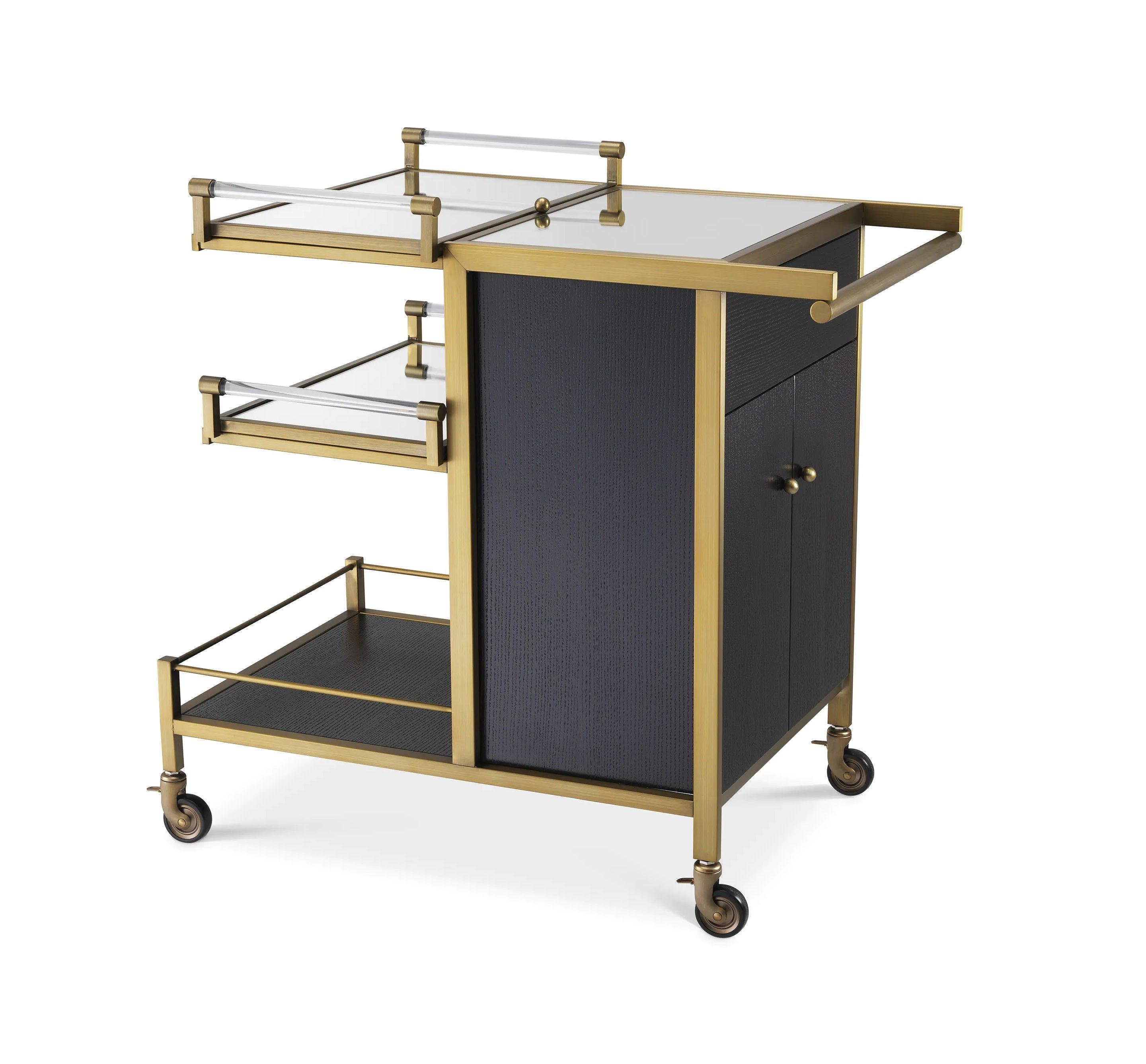 Stellen Sie sicher, dass jede Party dank dank Bar Eiffel, der Eleganz und Funktionalität ausstrahlt. Dieser Kinderwagen mit einem raffinierten Finish von gebürstetem Messing fängt das Auge und fügt jeden Raum den Unterricht hinzu.